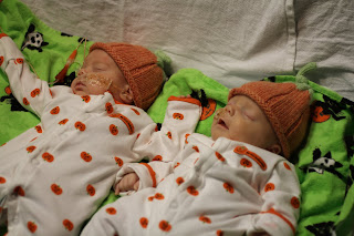 Mason (L) and Christopher (R) right before Halloween! Still in the NICU. . . currently 36 weeks 3 days gestation (Born 28w 6d).