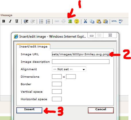 2. Click on Insert Image in the post. Paste the URL into the "image URL" space, and click Insert.