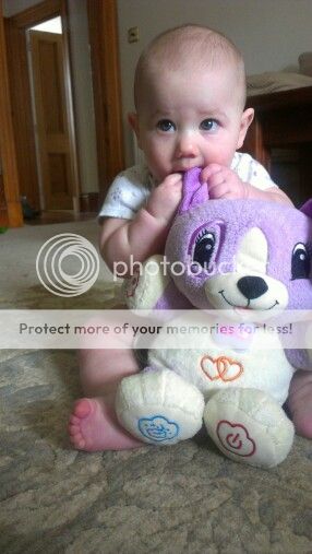 Here is E from the other day. This is typical of how things go at our house these days - E is on the move and wants to be by Rocky all.the.time