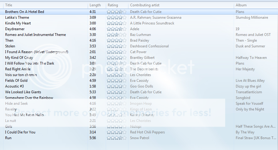 • This is a screenshot (because a list would make for a pretty long post) of my labour playlist. I know you said no vocals, but Vois Sur Ton Chemin and La Nuit are in French - I'm guessing you don't want vocals because they'd be distracting, but when you can't understand the language you don't really notice them. Well, I say that, but I studied French for 12 years and happen to know those songs by heart, and still found them relaxing but not distracting.