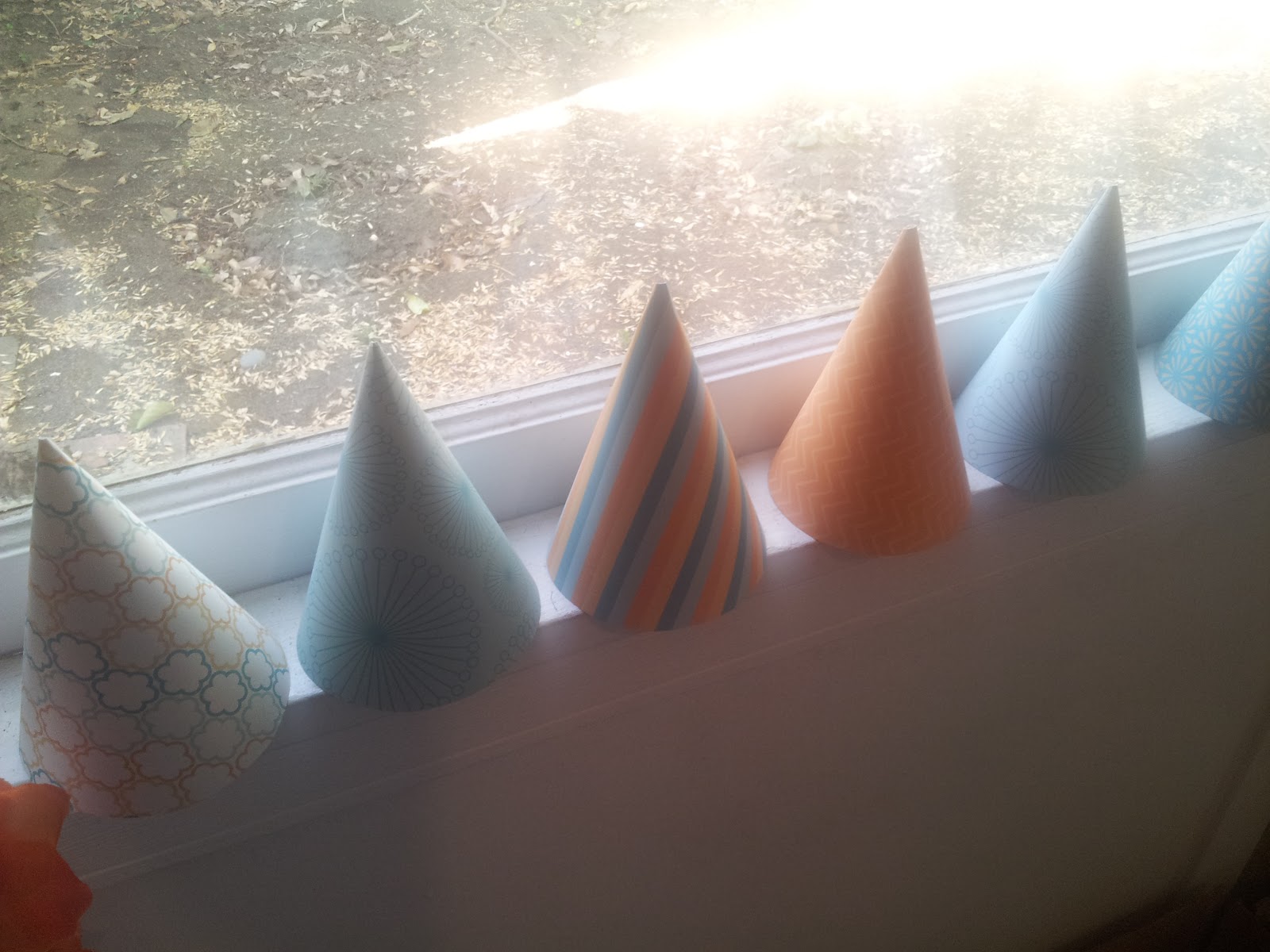 More hats and the invitations I made and posted here last week. I made E a special one with a number one and some decorations.