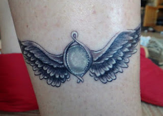 I absolutely love it, it's the pendant of my opal necklace (his birthstone) with wings and it's perfect.  If anyone around SD wants a tattoo I highly recommend going to this guy.  The picture doesn't do it justice, but here it is!