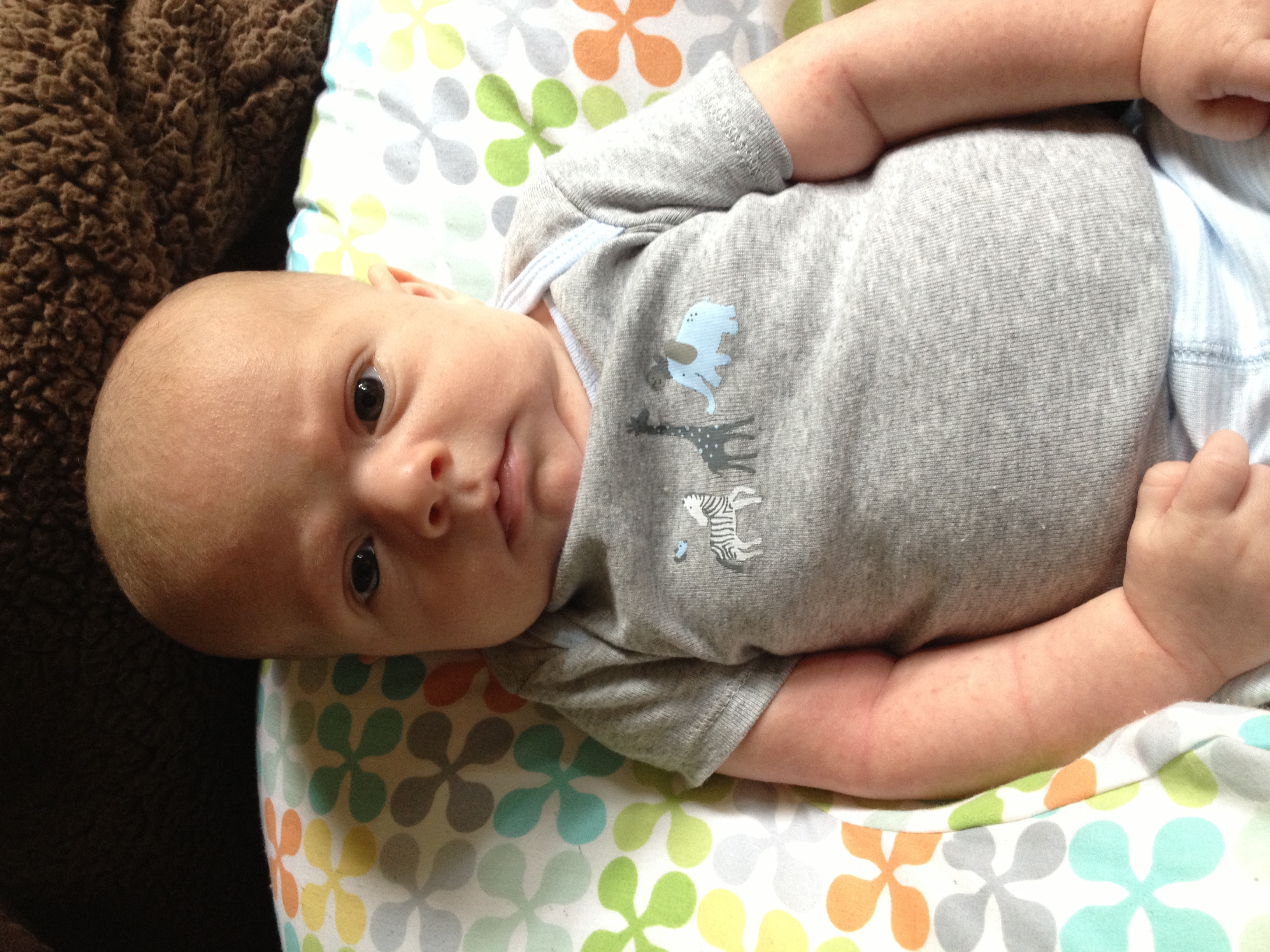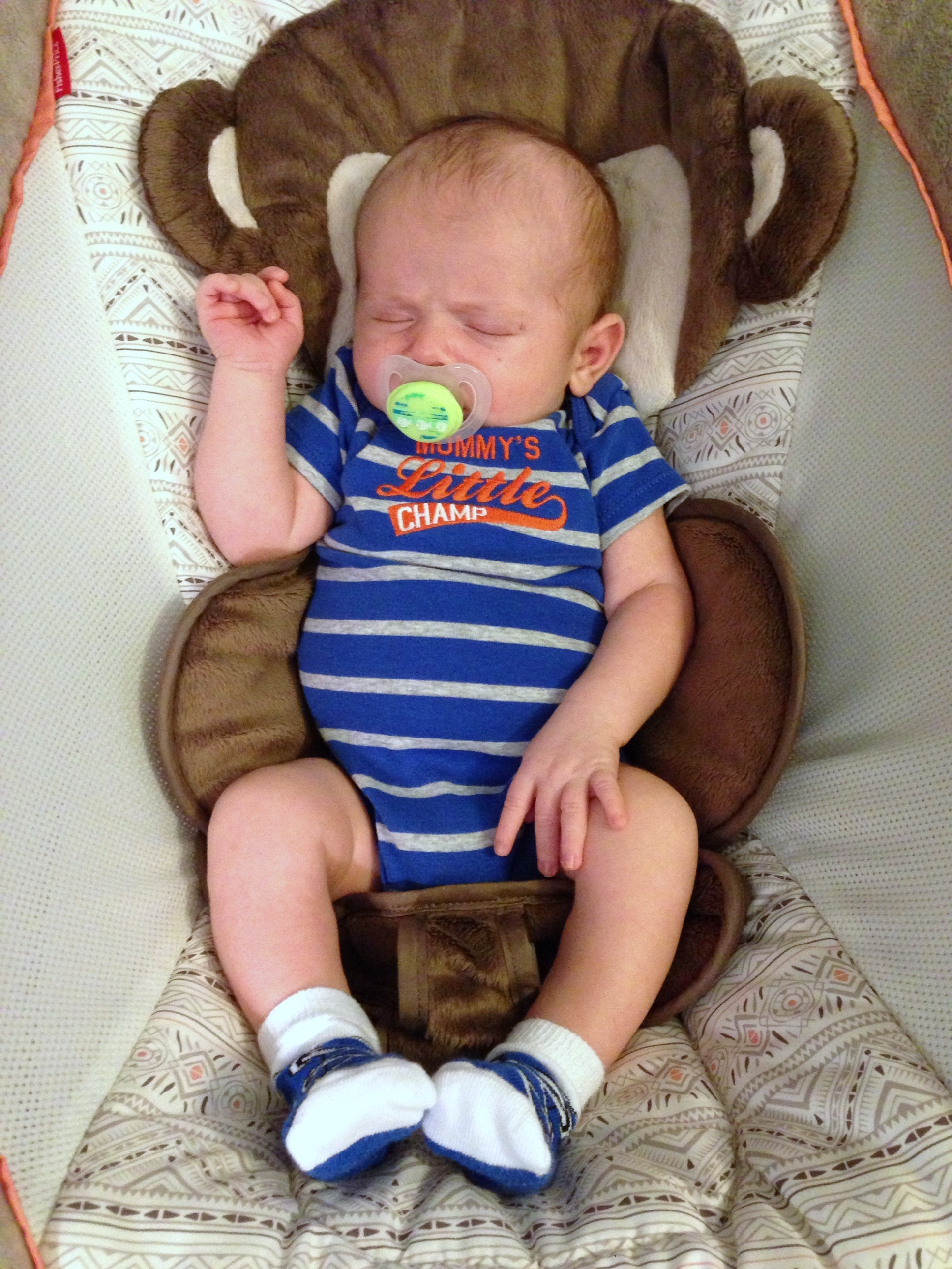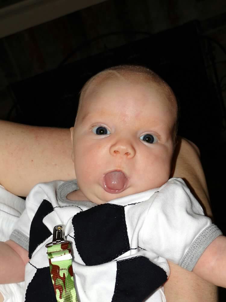 He has a love affair with his soothie. The one and only pacifier he will accept. 8 weeks old today!