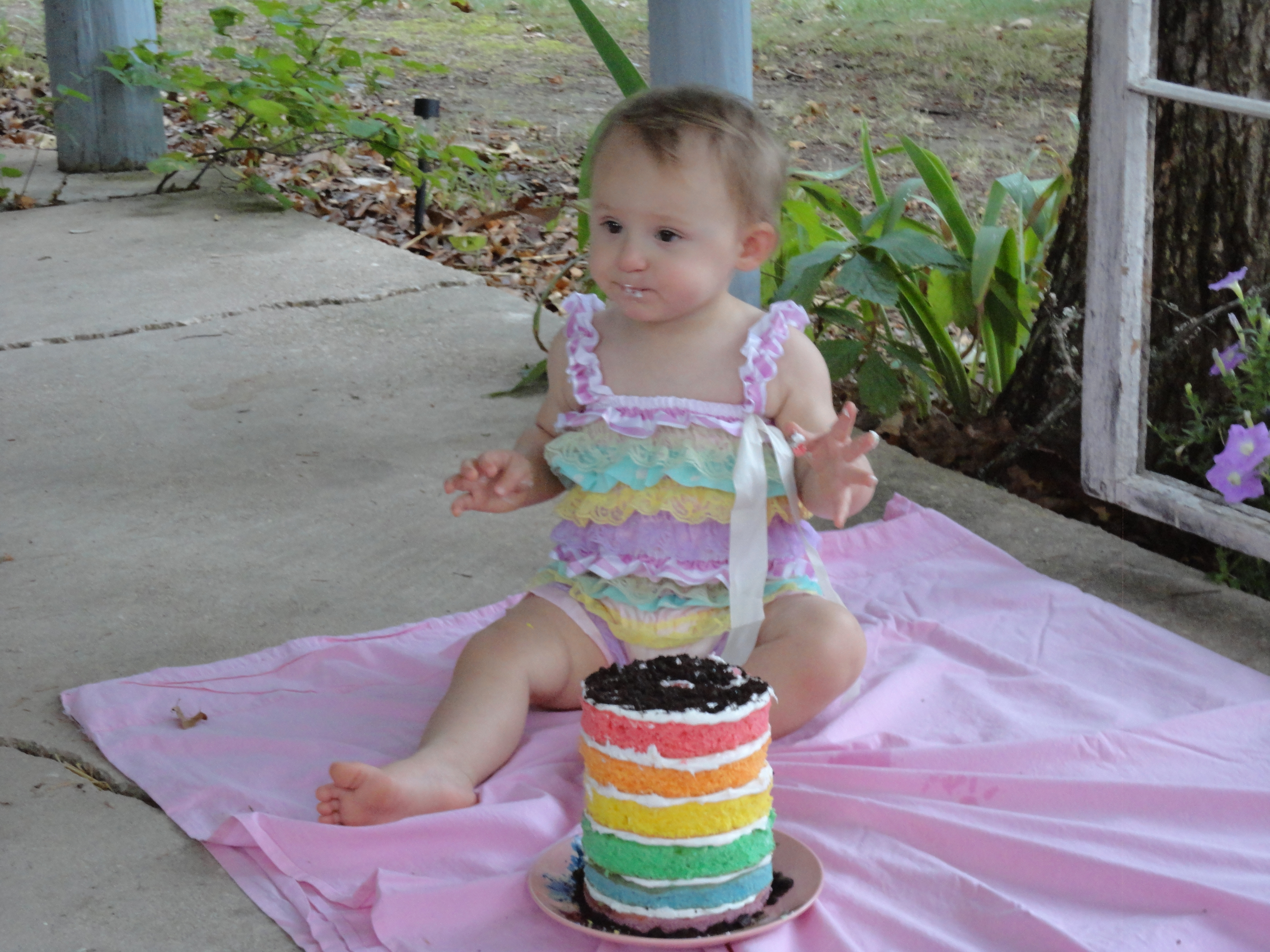 Ok, we haven't gotten our pictures back yet but I wanted to be part of all this PIPing too! Here is L before her cake smash. Well, she actually just knocked it over and wasn't too interested. Oh well.