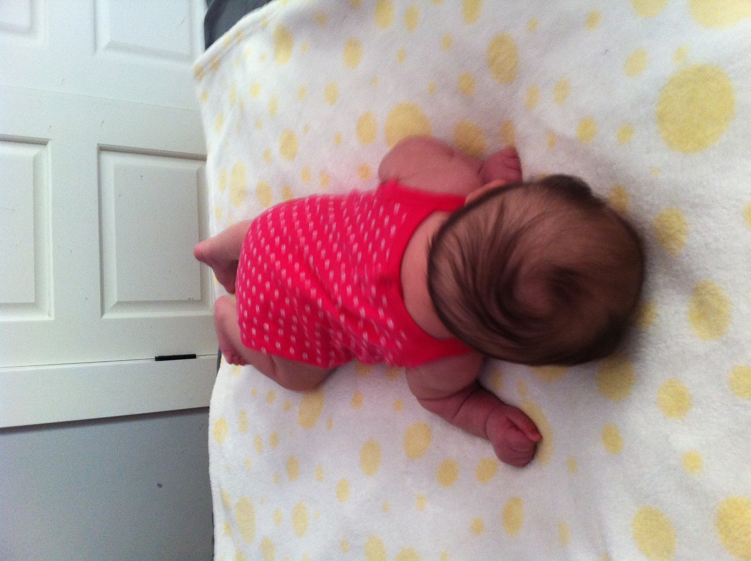 Edit She started rolling a few weeks ago so most times she ends up just rolling on to her back.