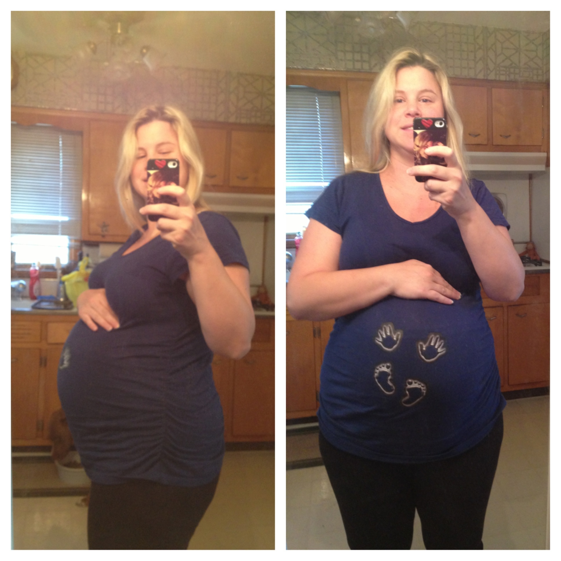 The second photo is today at 32 weeks.