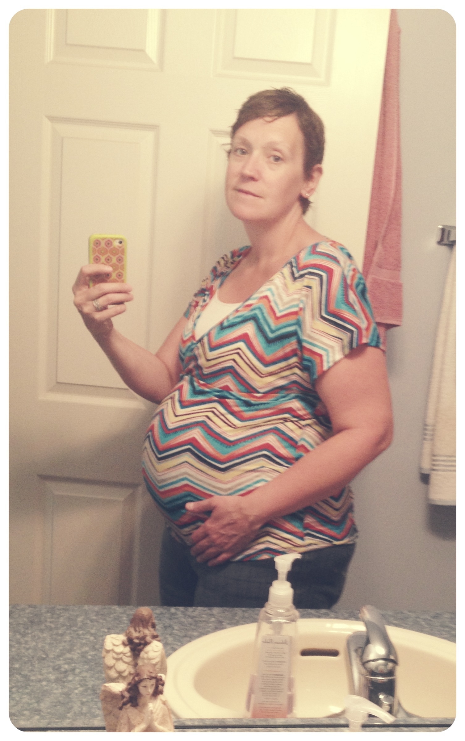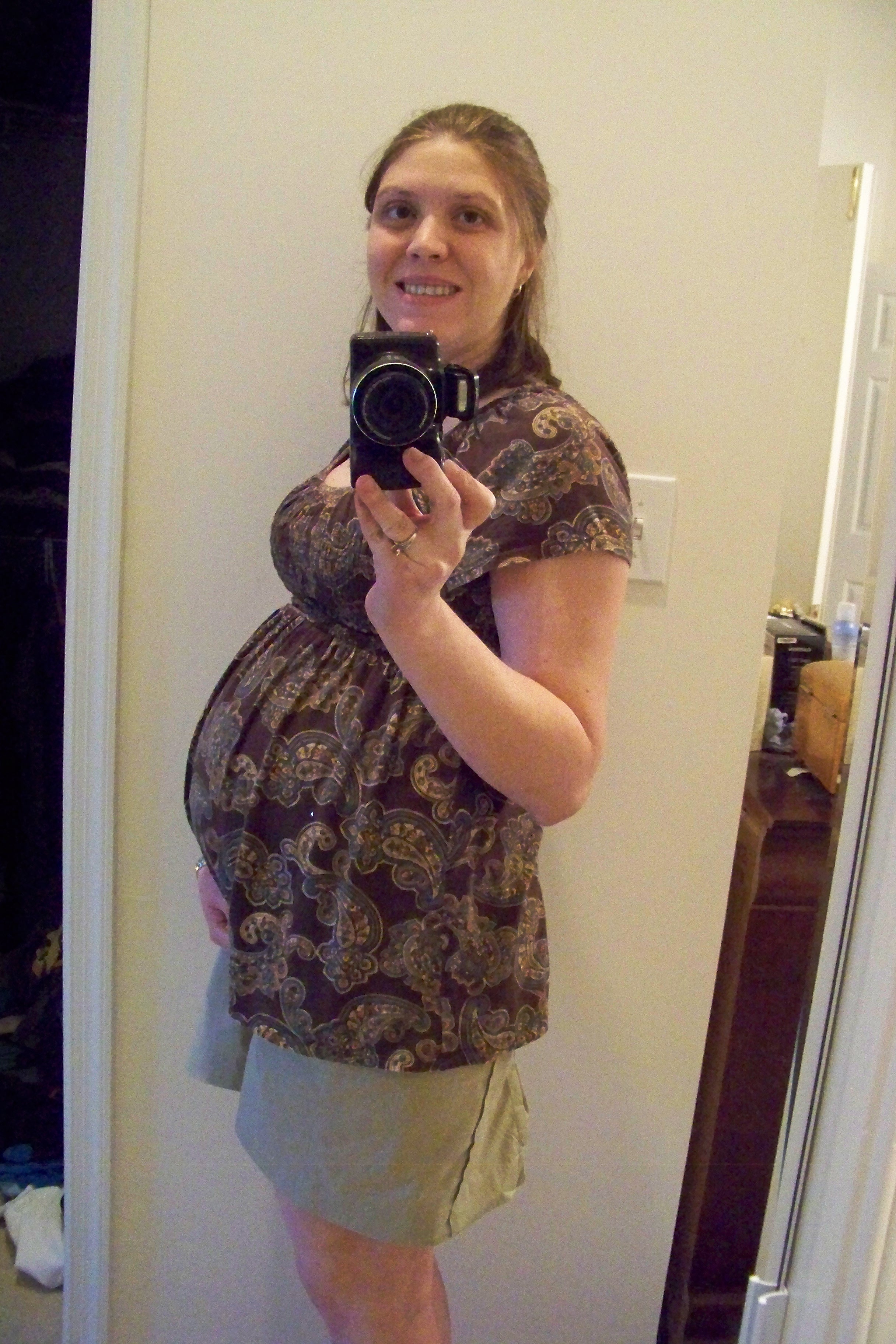 Problem: I'm addicted to all things chevron printed lately but it definitely minimizes my belly...which feels SO MUCH BIGGER than this pic! I was 33 weeks yesterday.