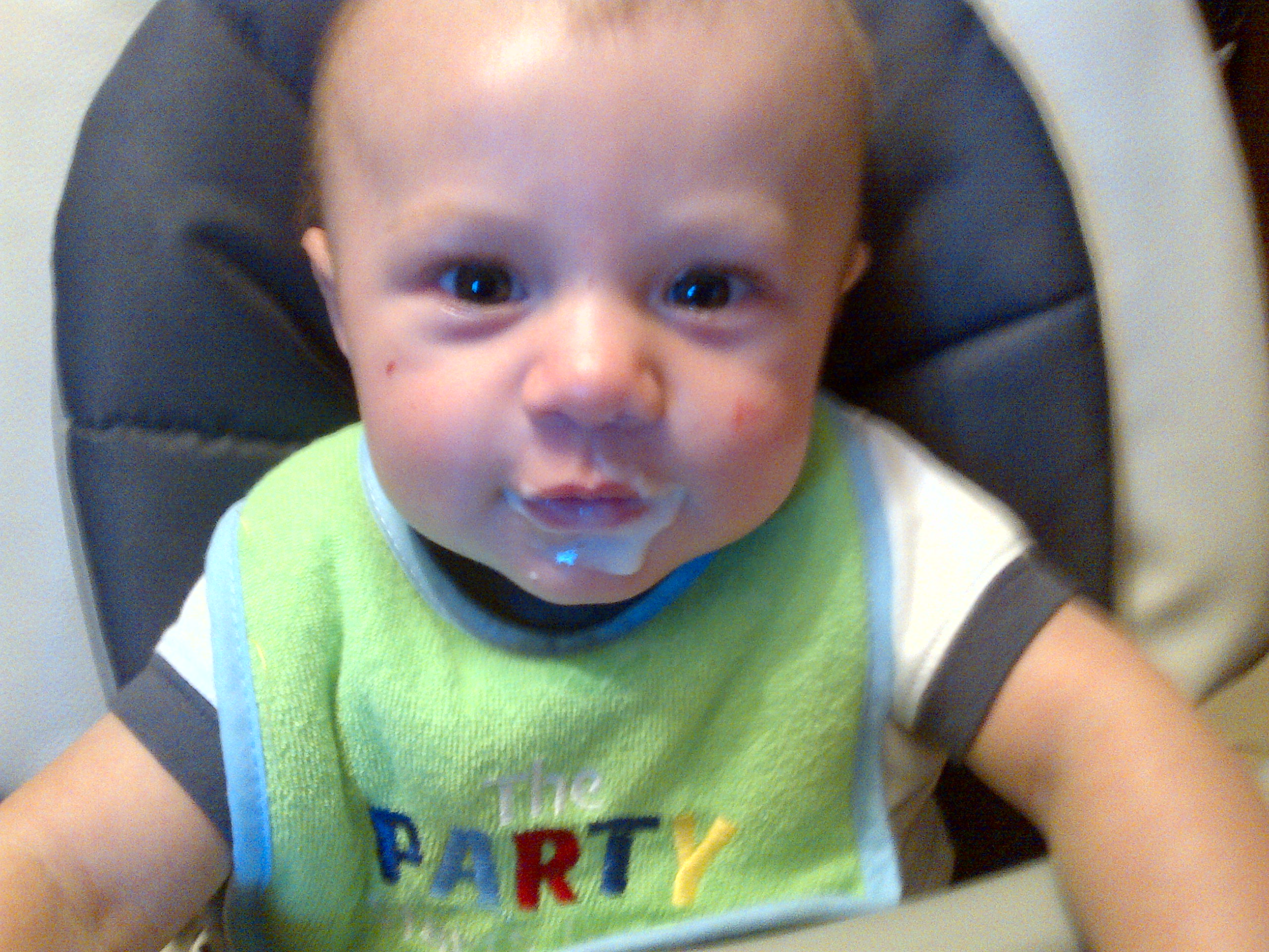 Tonight I gave DS cereal for the first time and he liked it!! He did a really good job eating....way better than I thought he would do the first time. Anyone else given their LO's cereal yet?