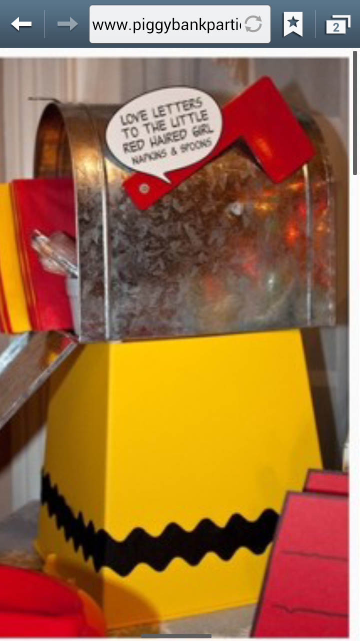 This is just the stuff I bought this week. The figurines are for the cake. The plush Snoopy and Woodstock for pictures. James has the Charlie Brown Onesie. A lady in our church is making Rosie's blue "Lucy" dress. The Woodstock flags are for food display and labeling. The Snoopy Doghouse is a huge 4'x4' foam board for picture backdrop. The black letters are for the psychiatrist booth and the last 2 pictures are ideas I borrowed. Saving comics and bought a cheap mailbox!