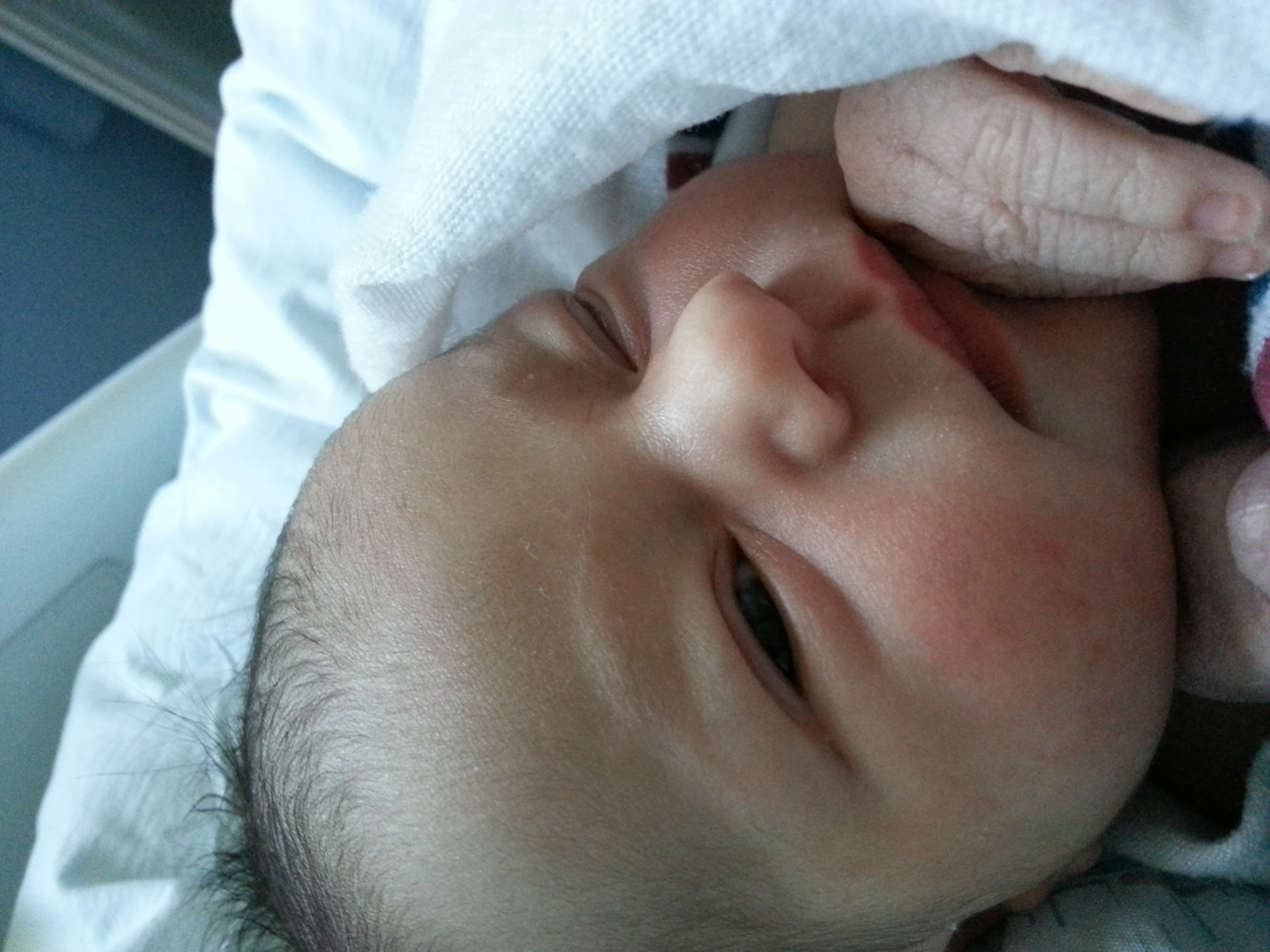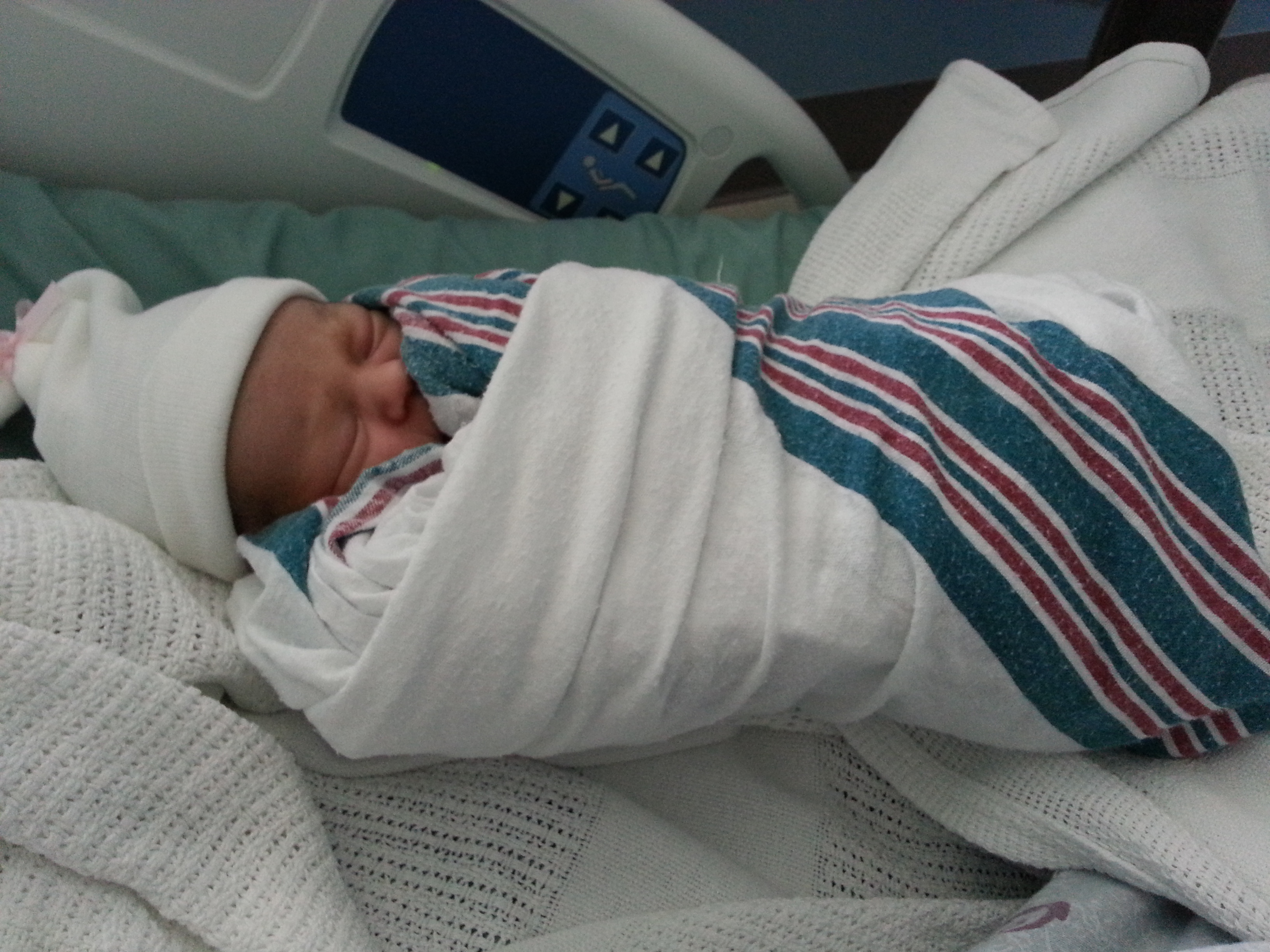 Went into L&D on Monday night for my scheduled induction having conx every 20 mins but still only 1cm dialated. After a little scare of me getting hypertensive ( hooking up the IV I started bleeding everywhere) We started the cervadil and soon after I was having conx every three mins but only dilated to three with horrible back labor and after 10 hours of not being able to move from my side due to being constantly monitered and having an oxygen mask on my face I gave in to getting an epi. Of course while getting the epi my contractions became right on top of each other and very painful so I ended up getting poked three times! Once the epi kicked I was able to sleep until about 6am when it was time to push! 3 hours later sone pitocin and forceps to turn my little sunny side up baby, Abigail was born at 9:06 am on 6 Aug. At 6lb 8.5oz she is pretty little but super long! We are finally home from the hospital today and I am happy we are! Congratulations to all those that gave birth while I was gone and good thoughts to those still waiting!