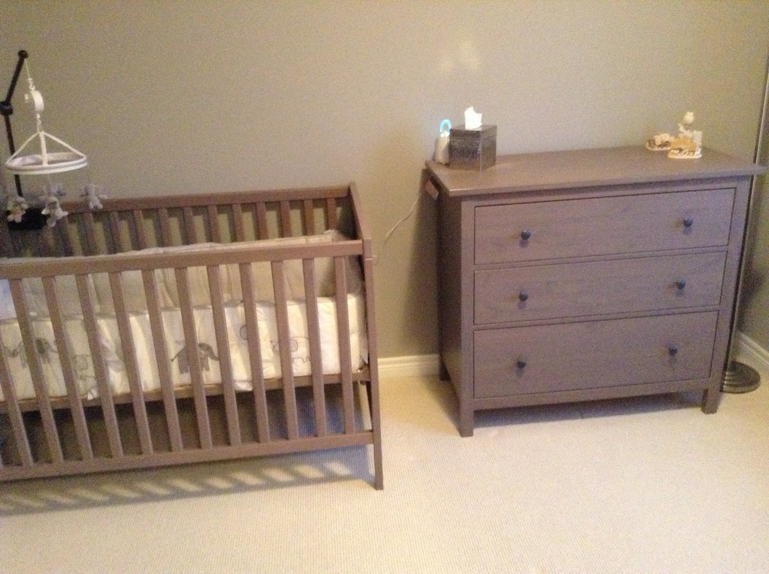 Once the crib was assembled I realized we made a mistake by picking a wood colour similar to the wall colour. Now I don't know what to do to liven it up. Any idea? Colourful elephant wall decals? A more colourful mobile? Or do I just re-paint? (The dresser is the same colour as the crib and the glider is white). TIA?