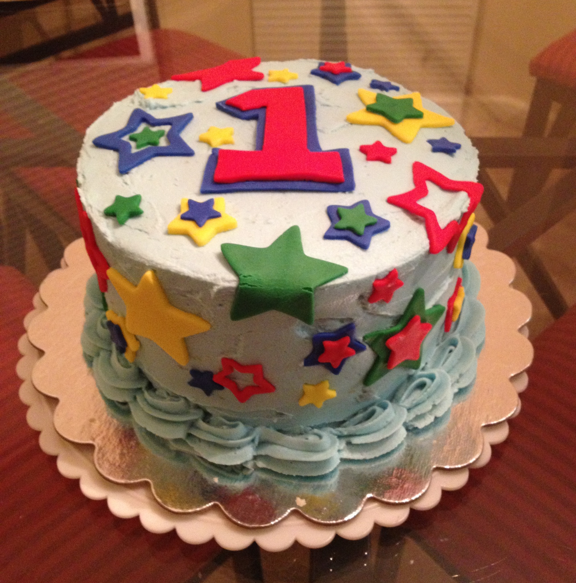 I can't believe my little man is 1 today! I have so many great memories of the cakes my Mom would bake and decorate for our birthdays that I had to give it a try. I think it turned out pretty cute if I do say so myself. I can't wait to see it all over his face later tonight!