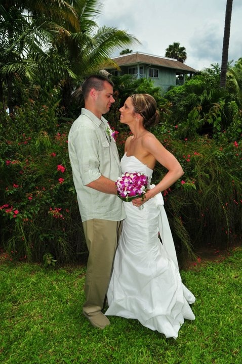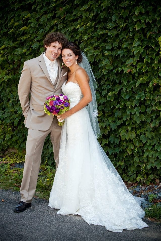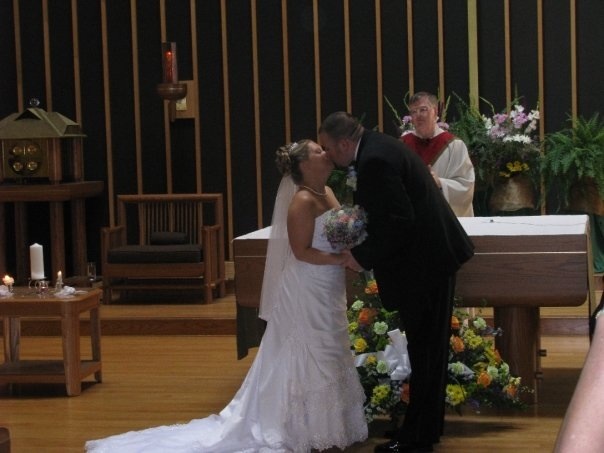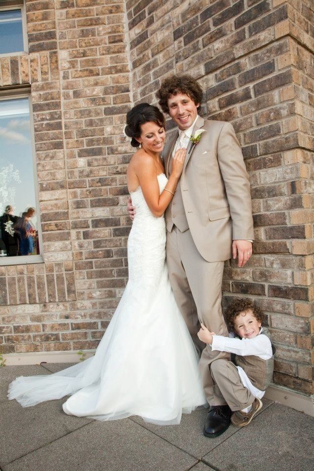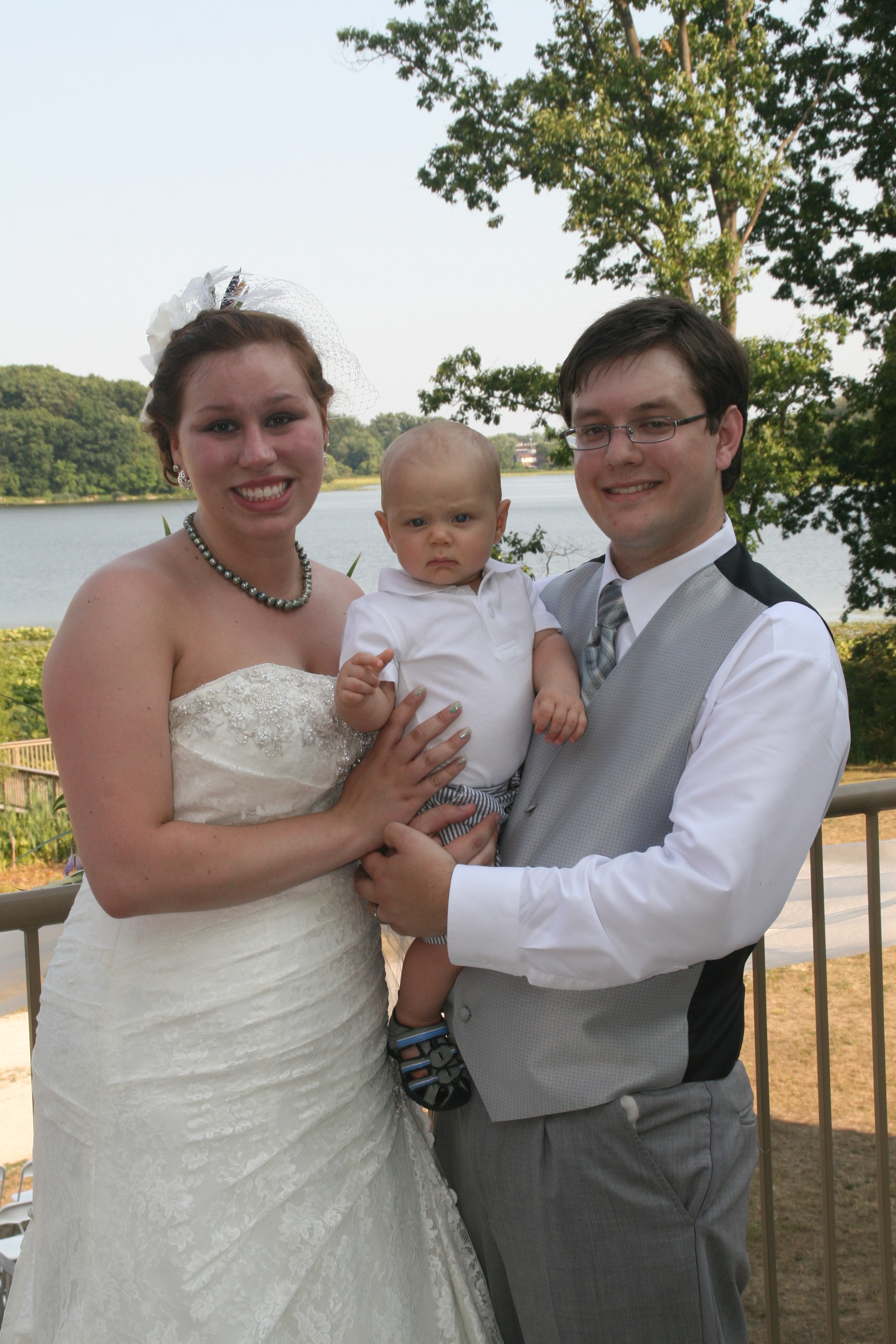 This is fun! We just had our first anniversary on the 10th. My dress was 2 in 1. Lace overlay on for most of these and off with the one with my husband and son.