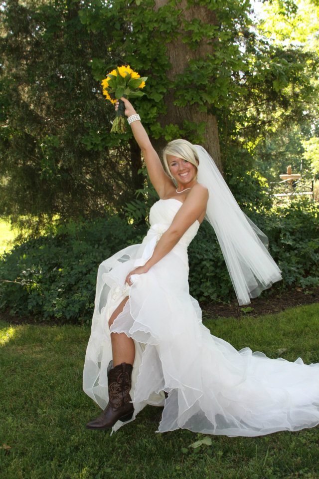 I wore cowboy boots at our reception! Couldn't dance in those heels.