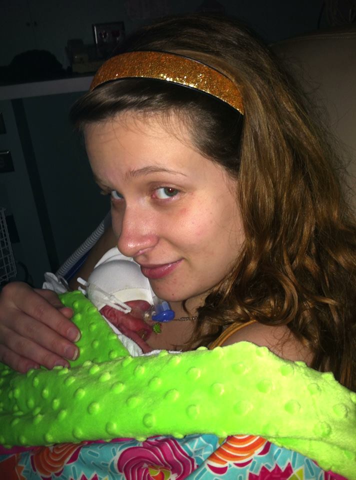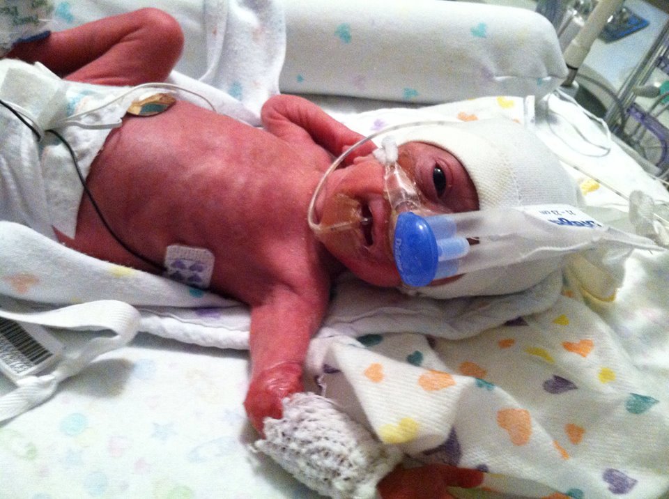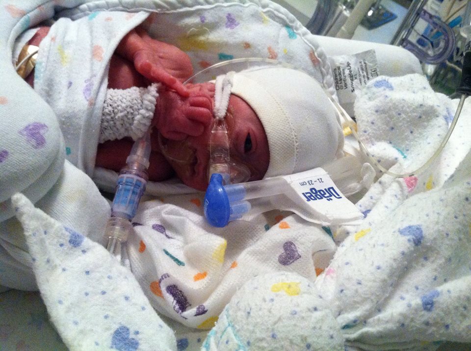 Kate is still doing great: She is above birth weight, and has been for several days after a bit of a roller coaster in regards to weight. She is now just 7 little grams shy of 2 pounds, and is getting 18 CCs of milk every three hours, with little to no aspirate! Her TPN and PICC line were discontinued yesterday, her bili light has been off for quite awhile (I lost track of how many days it's been), and her bravery bead string is almost full, so the little champion is going to need another one soon! We're still on CPAP at the moment, but having very few heart spells...she went almost 48 hours without one a few days ago. I'm hoping it can be removed relatively soon - she hates it, and is always trying to rip the mask off.
