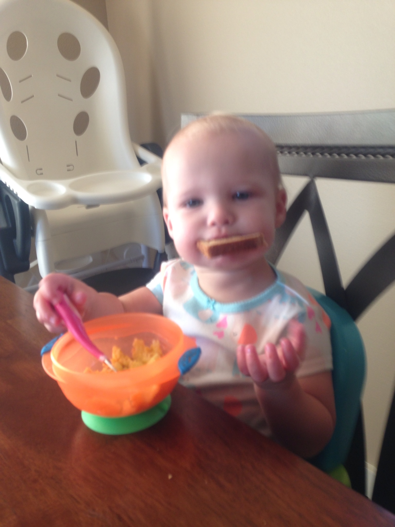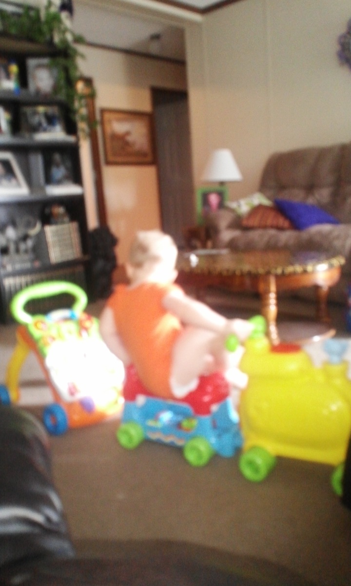 "T" is for train...he had to 'add to' his train and brought more toys along for the ride...sorry it's blurry.