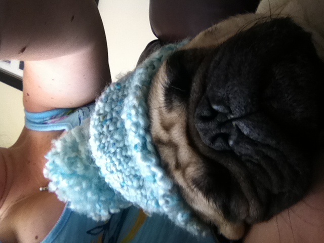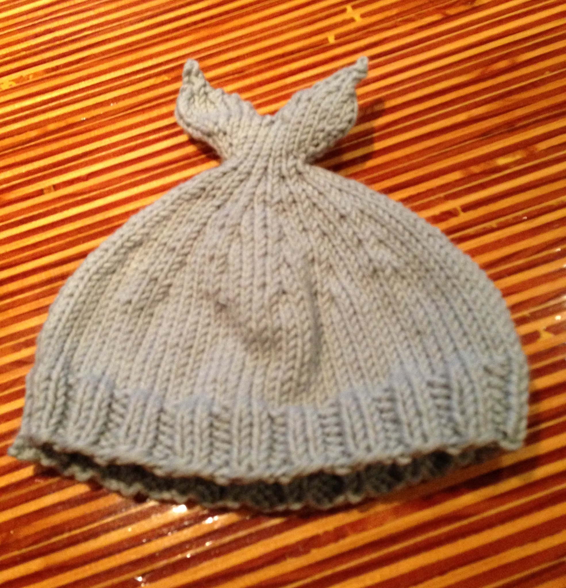 I don't have much left to do except to wait for this LO to arrive. Yesterday, I finished the baby blanket I've been working on for months. Today I made this cute little whale tale hat. Tomorrow I may try my hand at crochet.