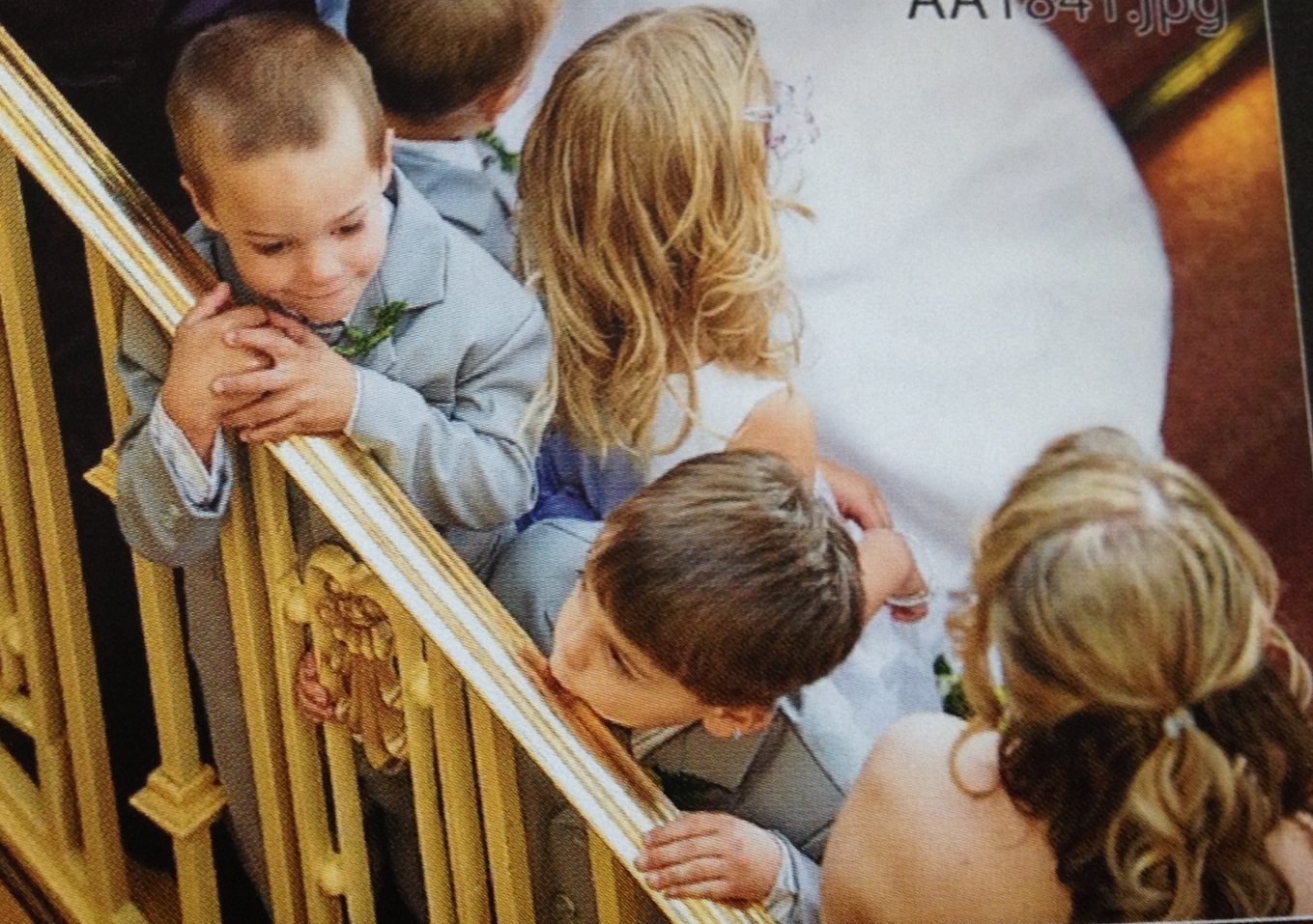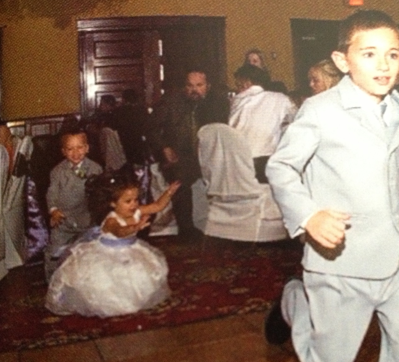On our wedding day we had some kid oopsies which were all pretty comical. During te ceremony, one of my nephews kept blowing raspberries onto the banister of the stairs we were standing on (like while everything else was silent). Once we were announcing everyone at the reception, my other nephew completely knocked over his little sister ( a flower girl ) and pushed her out of the way. His reasoning was simply, "she was moving too slow!" She wasn't even two years old at the time. The night before the wedding my entire wallet was stolen. It had everything I needed in life inside. It had my social security card, license,$350 cash because of last minute tips and things I had to pay. We were leaving for Brazil 3 days later so I had to get everything replaced in that time minus $350. Nightmare!! But the wedding itself was a blast - one of the top days in my life besides kids being born : )) The very last picture really shows how proud he was after shoving his sister out of the way ! Family