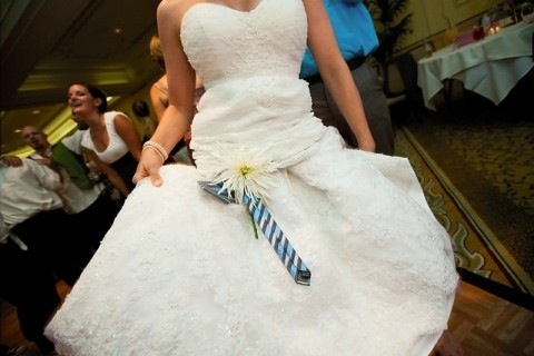 My dress (lining) got caught in the zipper pretty badly and they had to cut it to get my dress on and my bustle broke 1/2 way through the night, so we used a friends tie to pull it off the ground... That way I could still dance