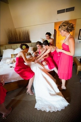Everyone got crazy drunk. My father in law ended up shirtless, with some sparkly scarf he stole from some lady tied around his head, dancing like a Kung fu fighter. My SIL puked all over the bathroom. One of my BMs puked on me. My BIL kept trying to steal a flag from the putting green (we were at a country club) and put it in his car. When my sister yelled at him, he locked himself in and set off the car alarm for like 15 minutes. My husbands aunt and her bf stole a golf cart and had sex on the sand on the course. My mom flipped out and yelled at all the drunks and made 2 BMs cry. When we were packing up, one if the drunks took my overnight bag and packed it in a strangers car, so I had absolutely nothing to take to the hotel. I left the hotel the next am in a tube top I found in my car, my husbands boxer shorts, and my wedding heels. And on our wedding night, we had to take my very drunk and full of puke SIL back to our hotel, get her a room, and tuck her in, cuz her bf disappeared and my MIL was busy dealing with very drunk FIL. Not the most romantic evening.