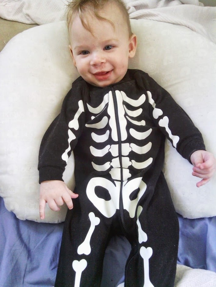 Omg...Last week at Sams and walmart they had fuzzy striped sleepers. One of them is orange with a pumpkin butt! Today I went to Target and they had a striped sleeper that came with a frankenstein hat so I bought that. Then I made the mistake of going 'to look' at Carter's. I got a skeleton sleeper! I spent 75 but I got quite a lot, almost everything was on sale. I'm the same with the bones/skulls and stripes. I. Can't. Resist.