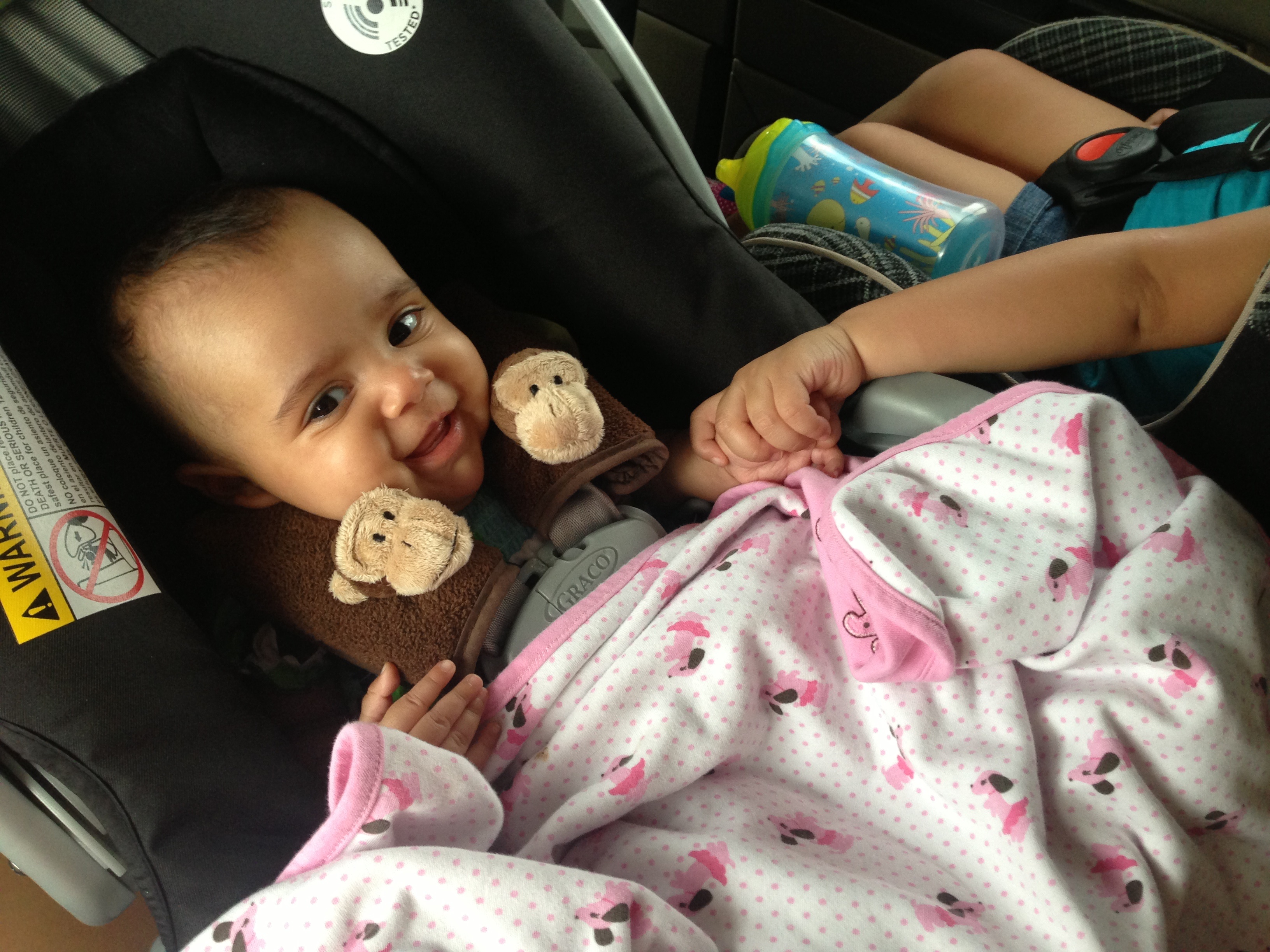 Big sis loves holding her lil sis hand in the car