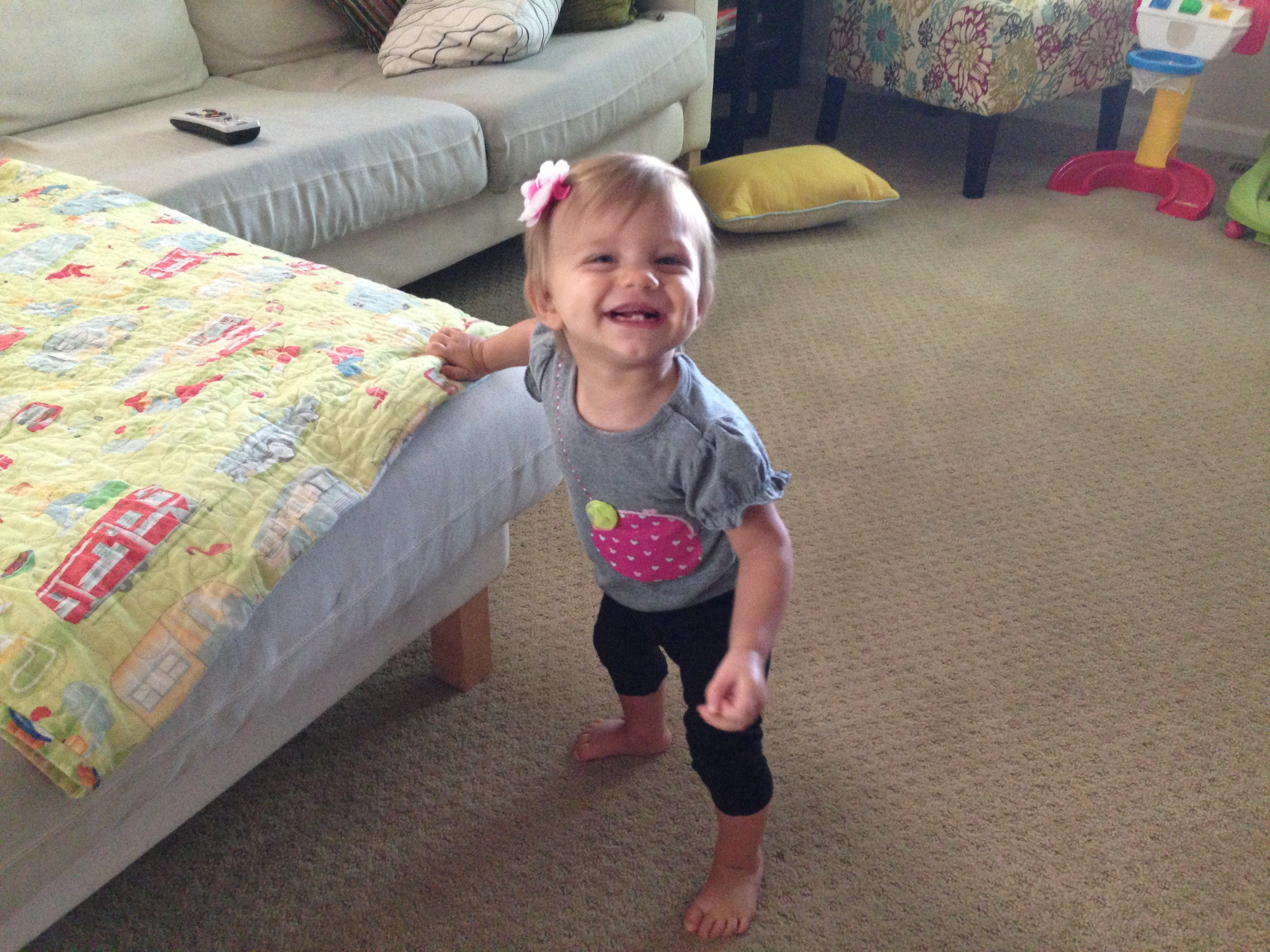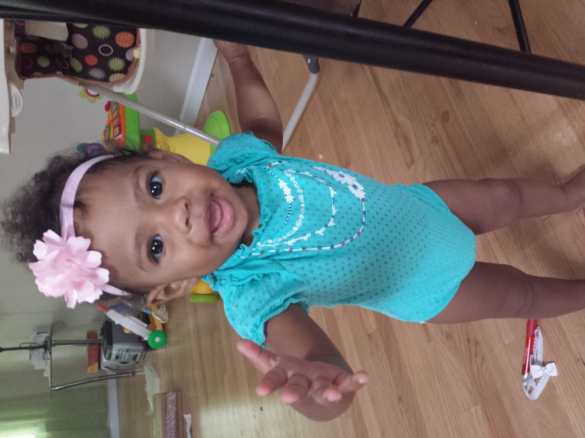 This is DD working on her walking (still needs our hands)...