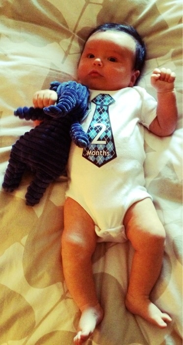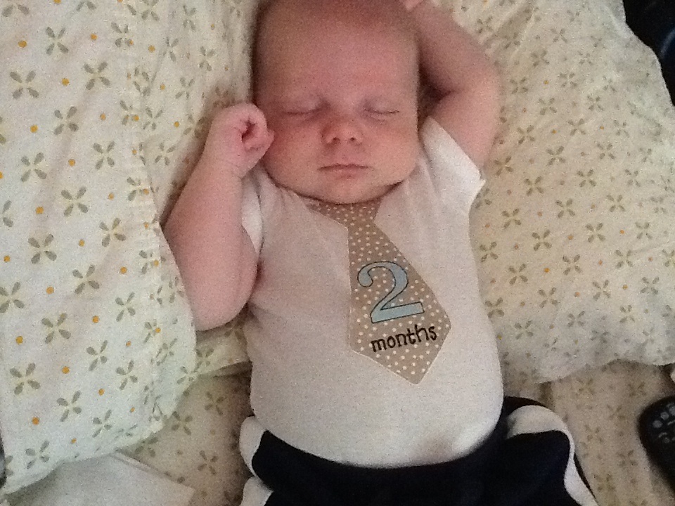 Isaac was 2 months today but because of how I was feeling I didn't take the pic. I'll do it tomorrow. He's already changed a ton in just the one month since I took the last pic.