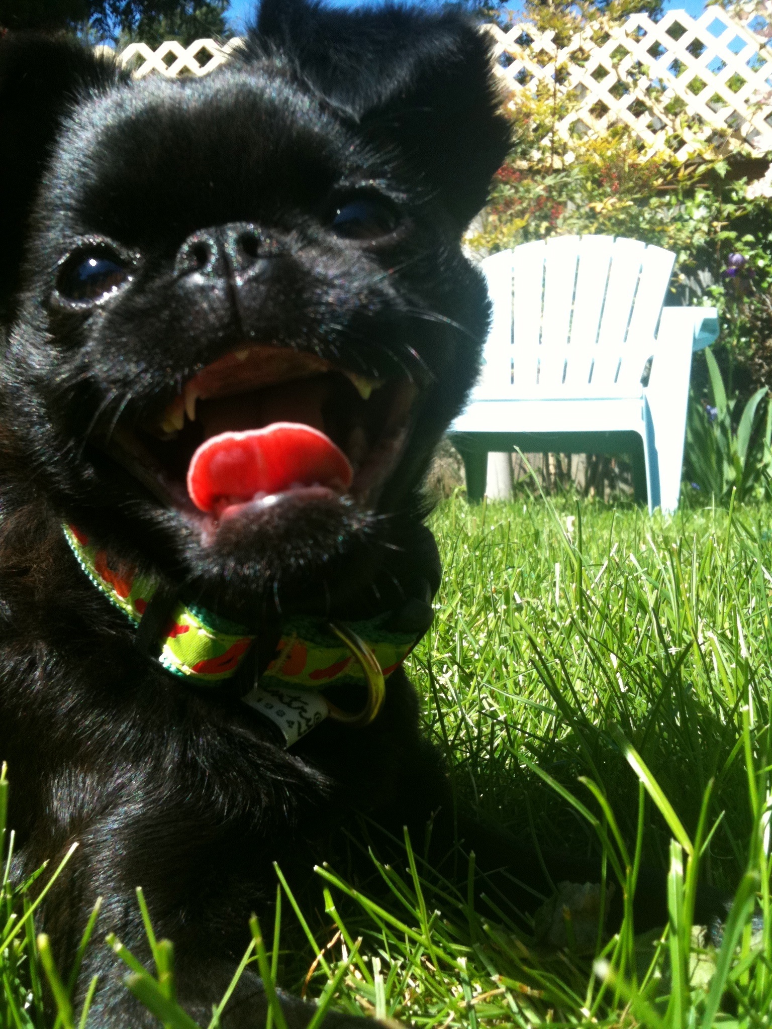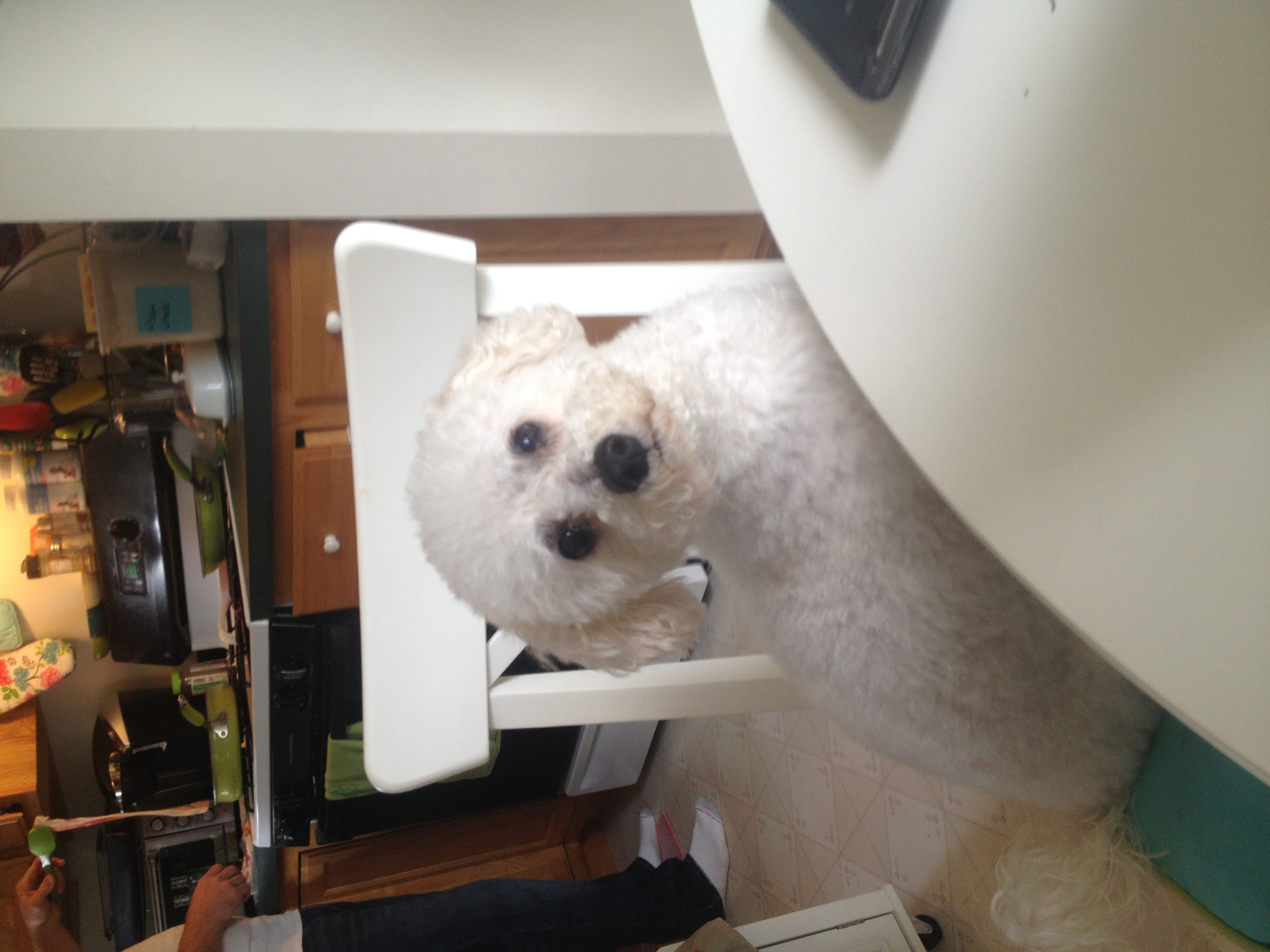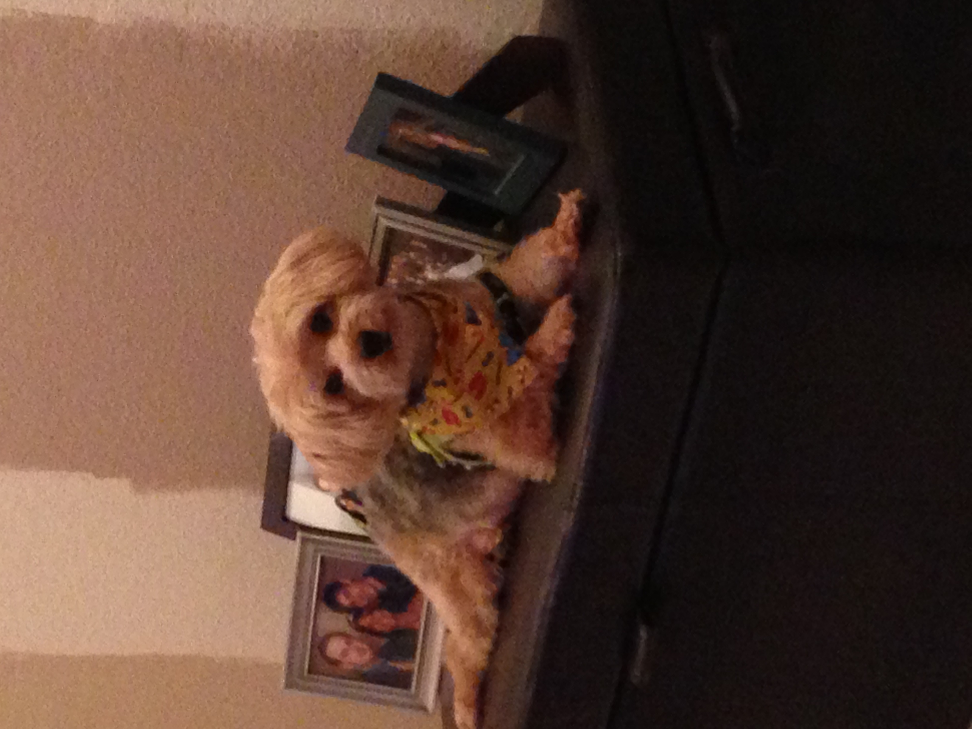 Both mine are rescues. The apricot one is Logan. He's almost six and we got him at two. He's taken to giving my legs (or anything else he can reach - he's short) a bath since I got pregnant.