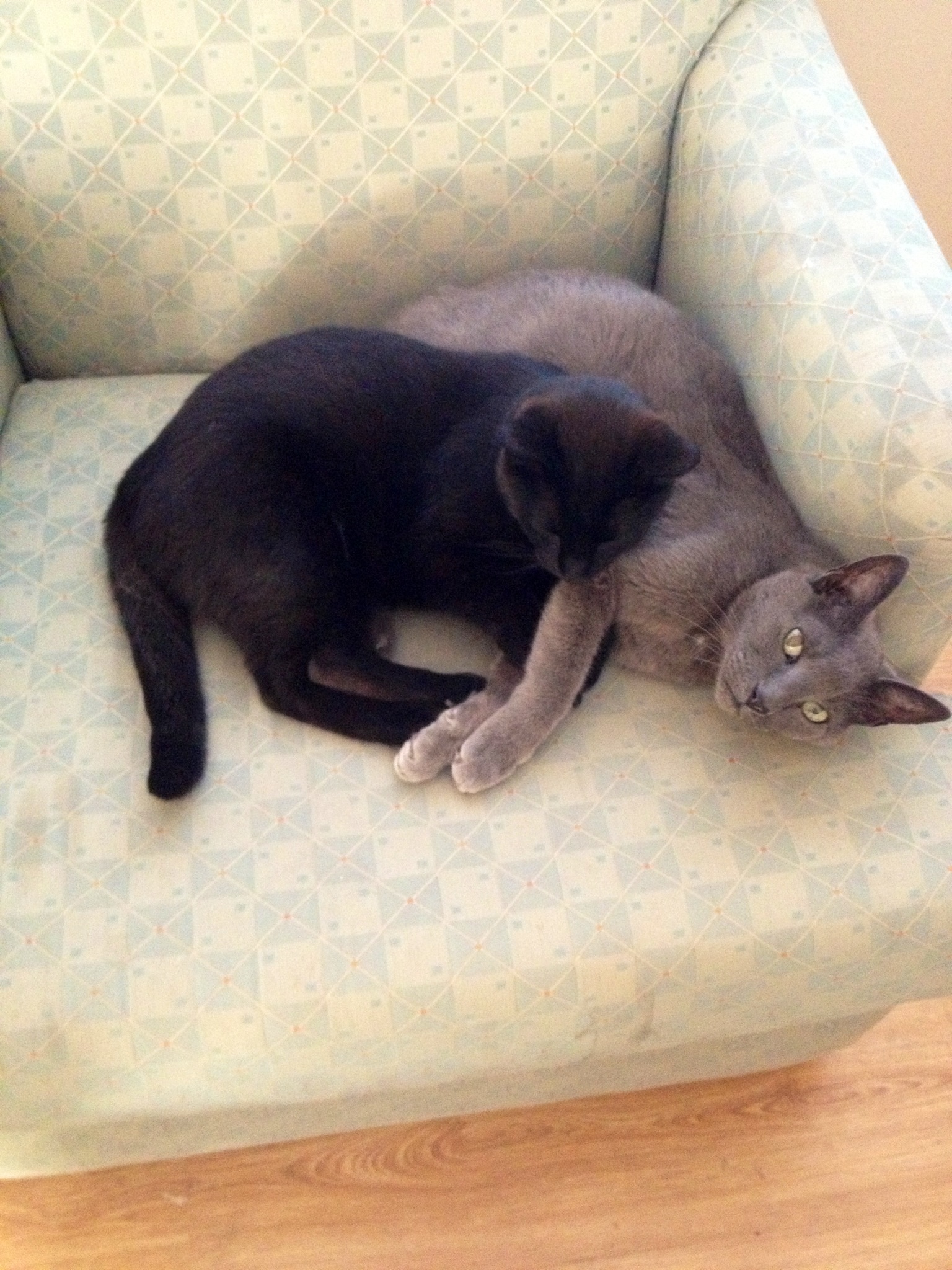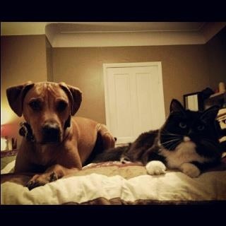 We also have a cat Aruba who is hilarious. She loves hunting chipmunks, playing fetch and playing with Remington.
