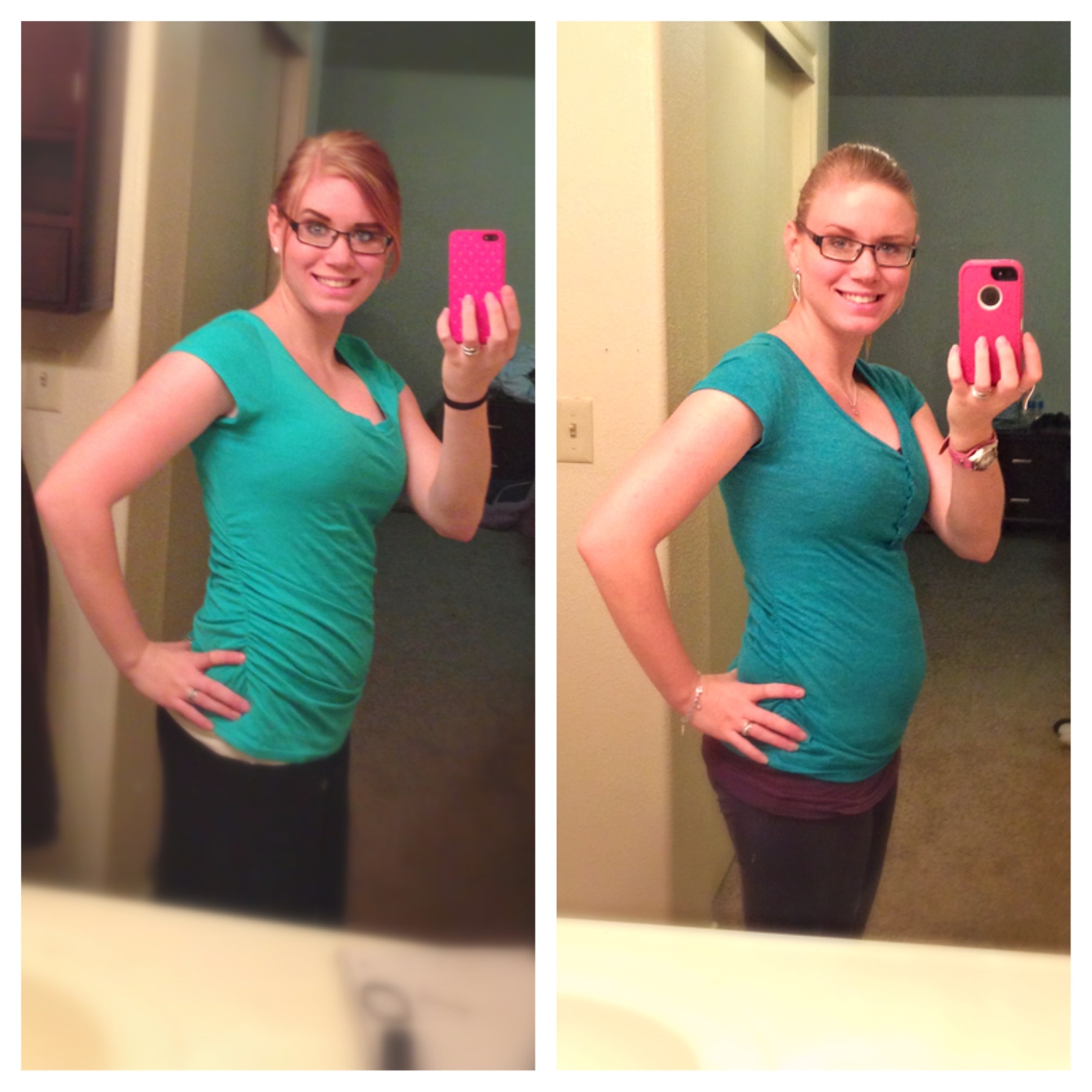 (Here is a non-symptom post. lol) It is crazy but I have to share the photo of me at 4weeks then me at 8wks 5d! It makes me happy but people are shocked I have a belly already, especially when it is only my first! Haha.