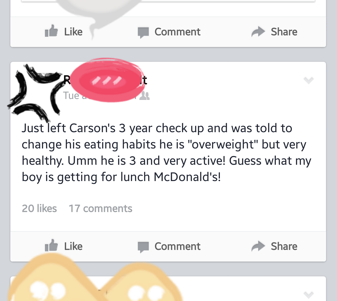 • Your friend is an idiot. In her tiny head, she actually thinks she is sticking it to the doc by giving her kid mickey Ds for lunch. Because the doc is a meanie! Some people.