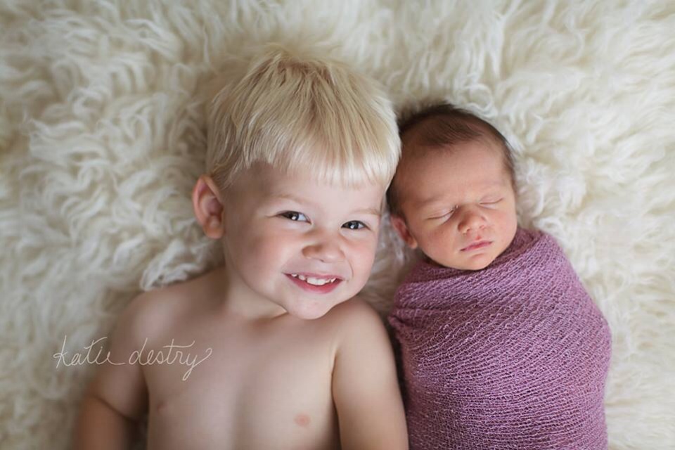 My son was ADORABLE when he was born. Like fresh out of the womb, adorable. No weird blotches, nothing. Then Natalie was born, and it took her a couple weeks to grow out of that squished newborn face. Now she's darn cute