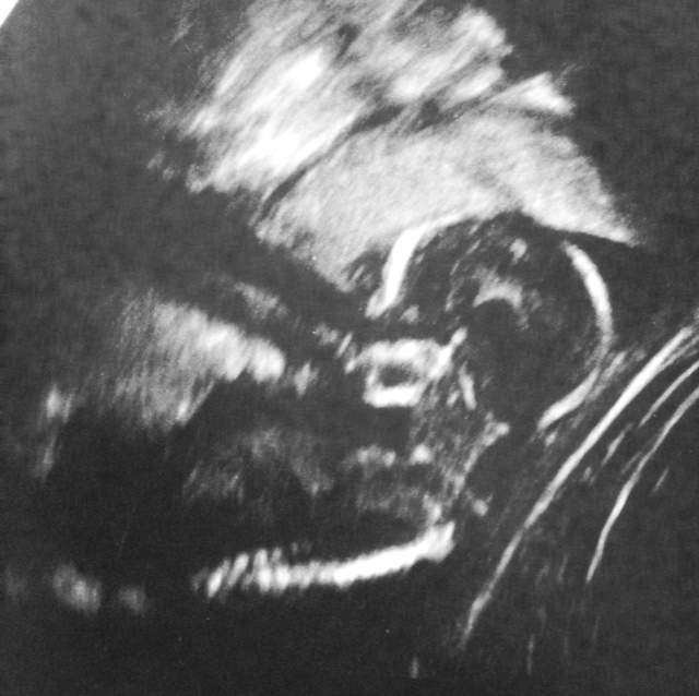 So we get to see our little one and within a few minutes the tech asks us if we want to know what we are having. YES!!!! I reminded her I was only 15 weeks but she said BOY!!! She checked several times and even made sure she wasn't seeing the umbilical cord and said there was no doubt in her mind we are having a boy!! We didn't get the best profile pic of him cause he was sleepy and wasn't moving much. We did get to see him yawn and stretch his little fingers out and I melted and fell even harder in love with him!!!