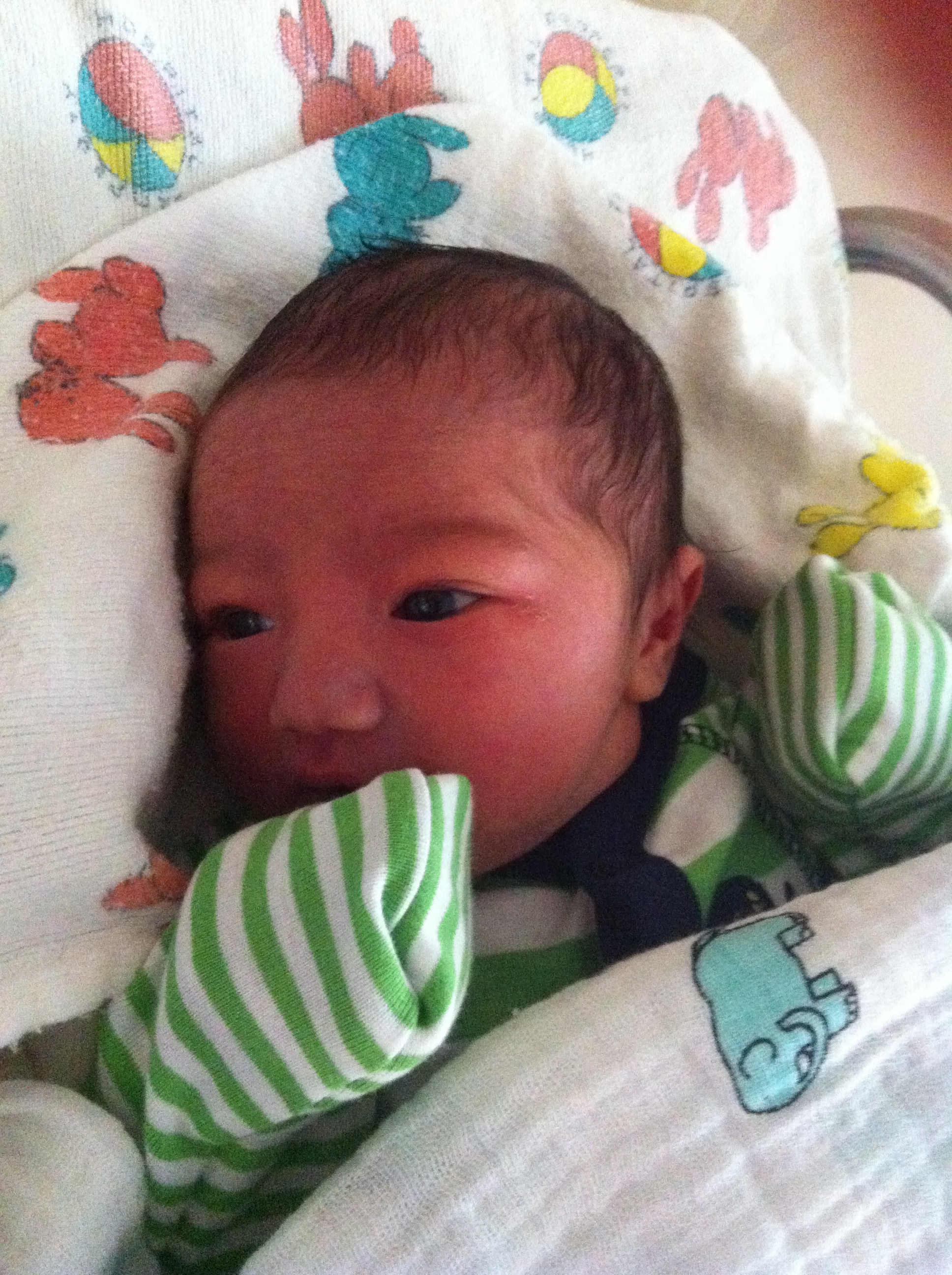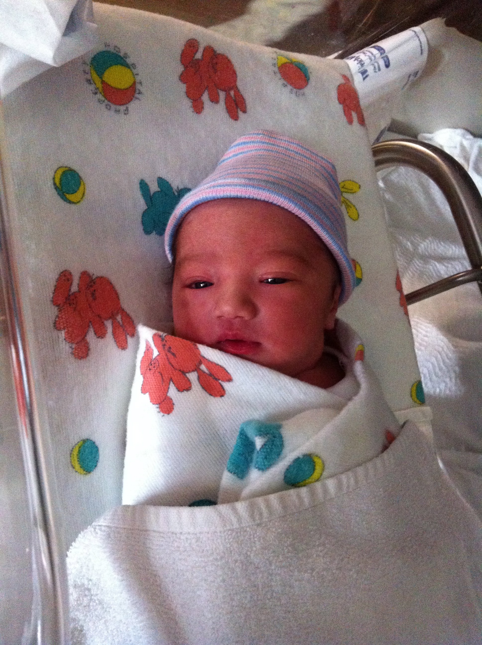 Born at 12:11 am today, 7lbs and 19in exactly. I had been planning a med free birth, my first. On Thursday morning I had bloody show and some sporadic contractions. At my regular OB appointment I was 2cm and 50% effaced so nothing too exciting. At 5pm I started to have some strong regular contractions-great! Got to the hospital and checked into a room at 9pm and was 5cm and 90% effaced, after working through some contractions on the bed I hopped in the tub, which was nice until transition hit and I started to lose it.