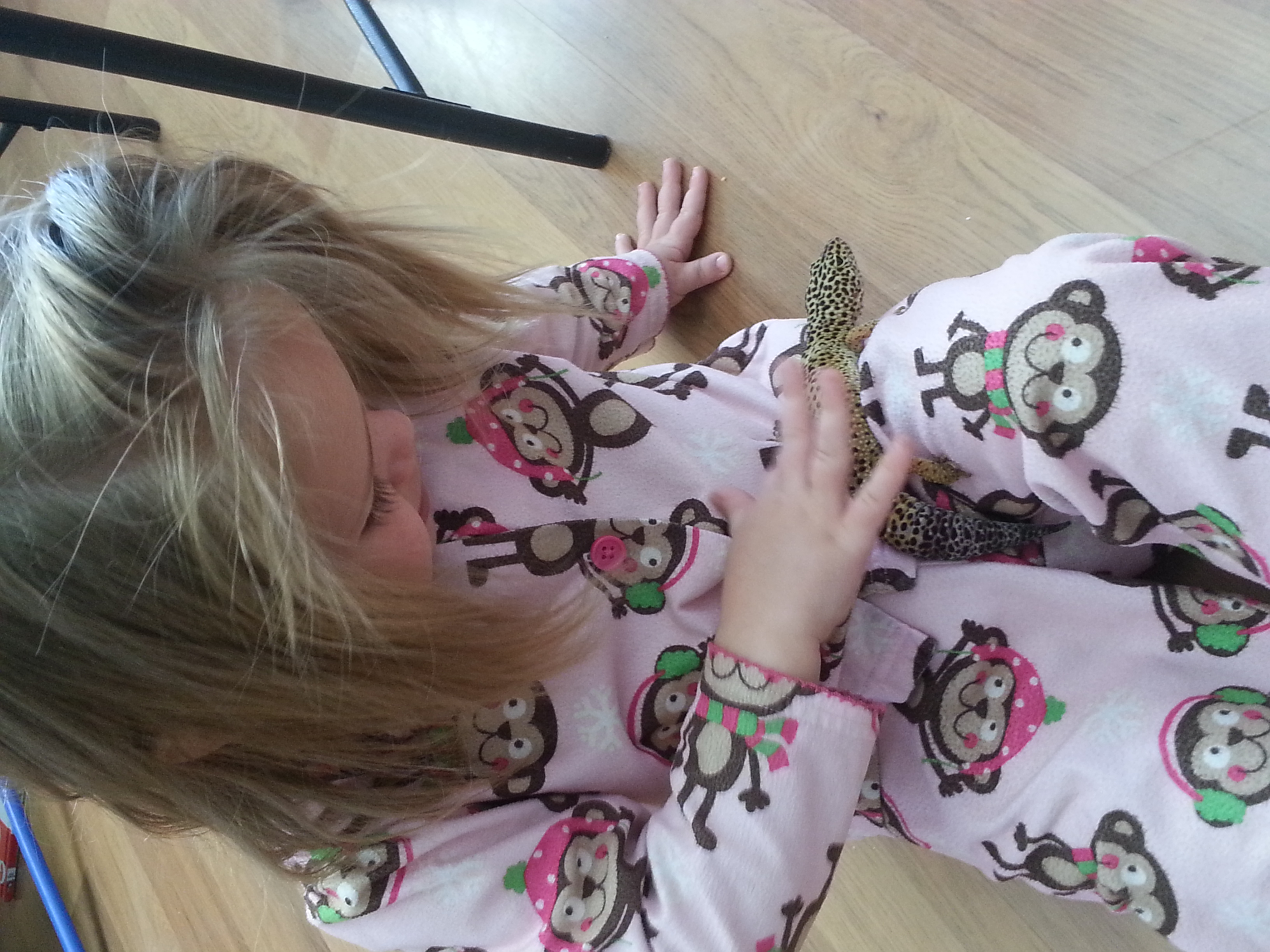 GTKY: What animals do you have if any?  PIP! I have a bunch. Our 2 yr old german shepherd, 8 yr old chihuahua, my two turkeys we got as chicks in the spring (H wants to eat them pretty bad), a horse, a pig that were planning to eat in the spring, chickens, a gecko (that's what my daughter is holding in the pic, ignore her bedhead). Half of them are on my dad's farm. The dogs and gecko live with us.