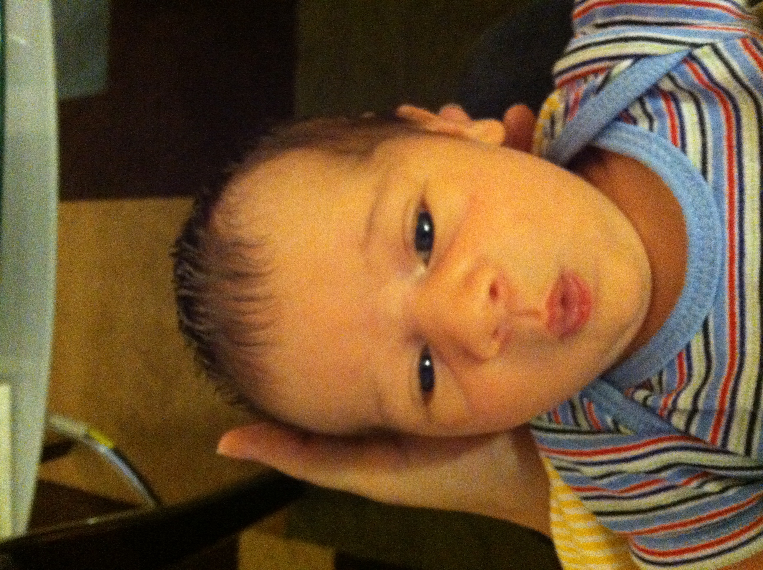 LO naps on my chest from 6-8 most mornings. I know when he's about to wake up because he starts moving his head side to side. He'll stop, pass out for another 5 minutes and then do it again. He does it over and over until I offer him the bottle. Lazy man
