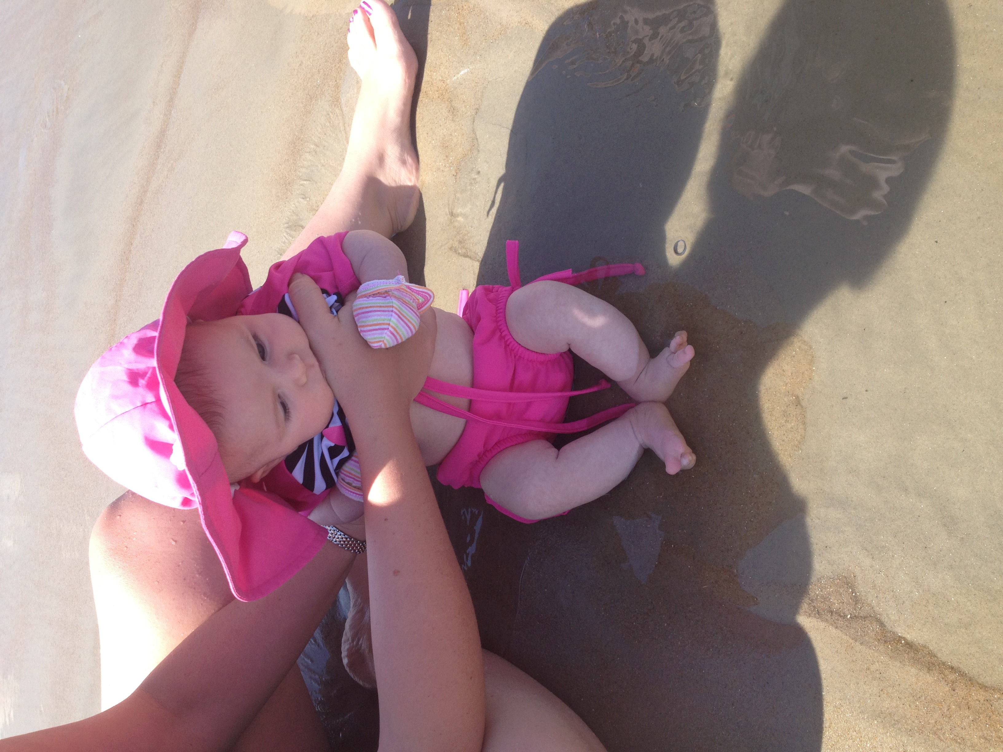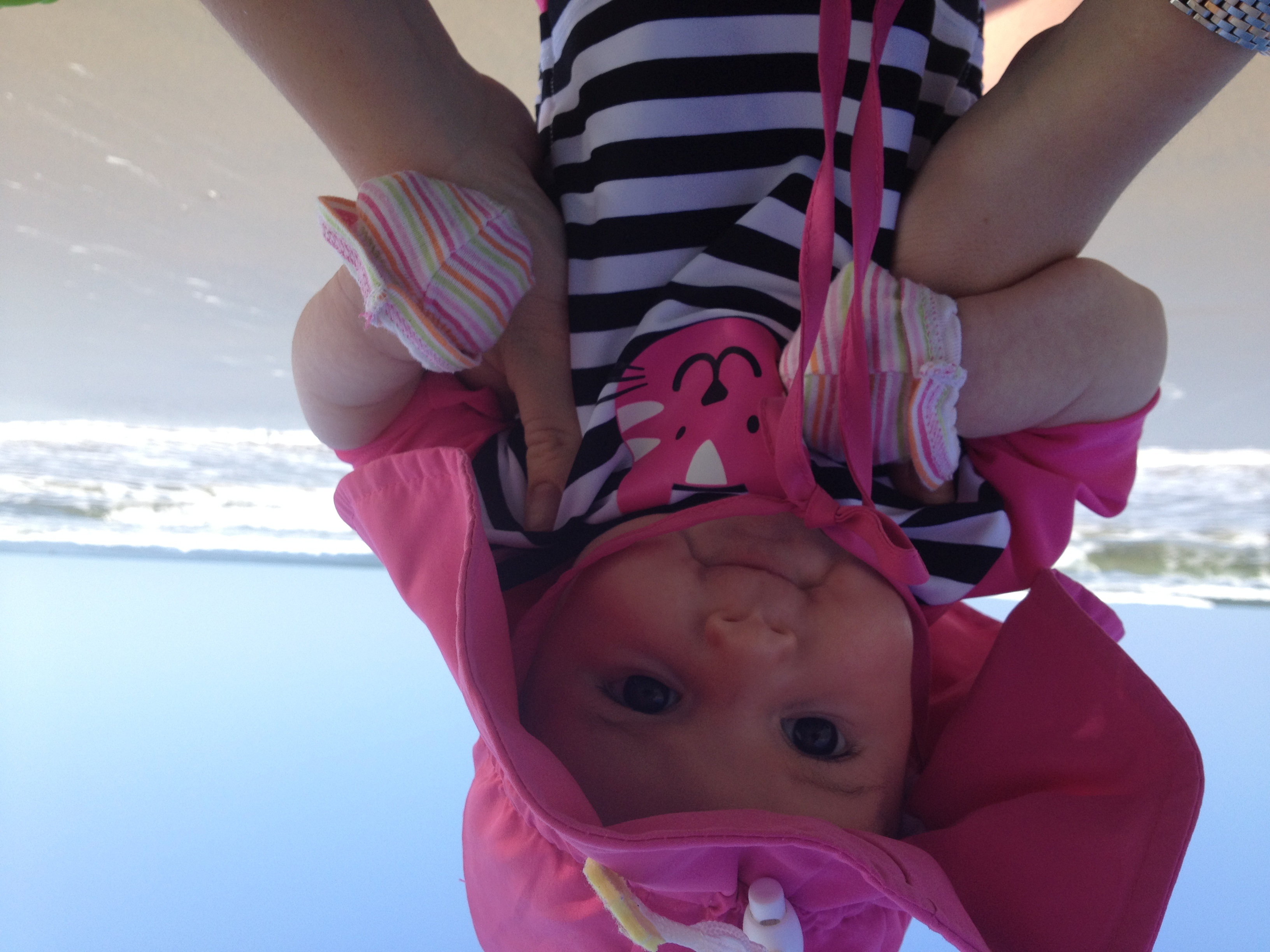 Here is DD at 2 months getting introduced to the ocean... And wondering if she will be wearing mittens til she is 16!