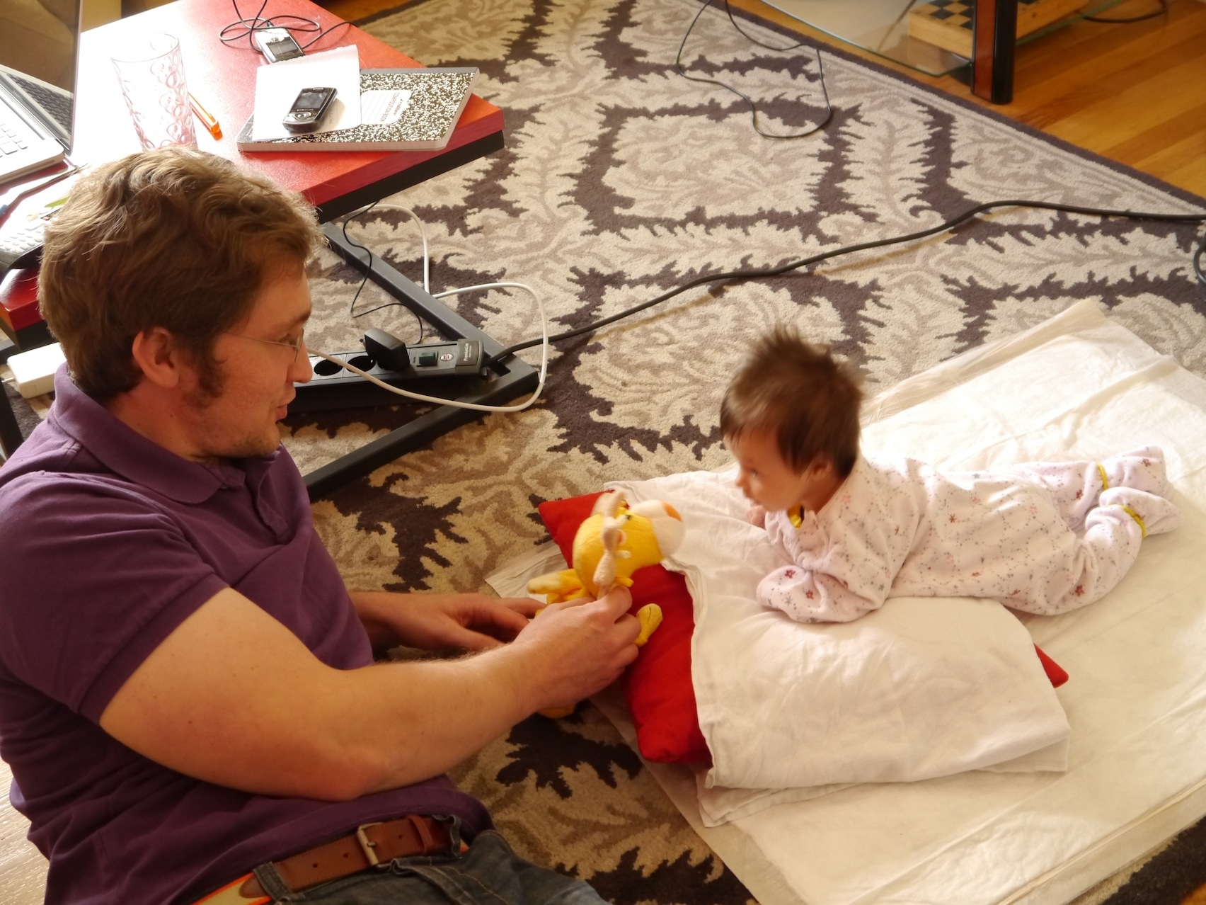 Here's my munchkin SUPER excited about playing with daddy. He couldn't stop laughing & I'm just in love with his little face, especially his eyes in the second one :x (I don't know why it's upside down)