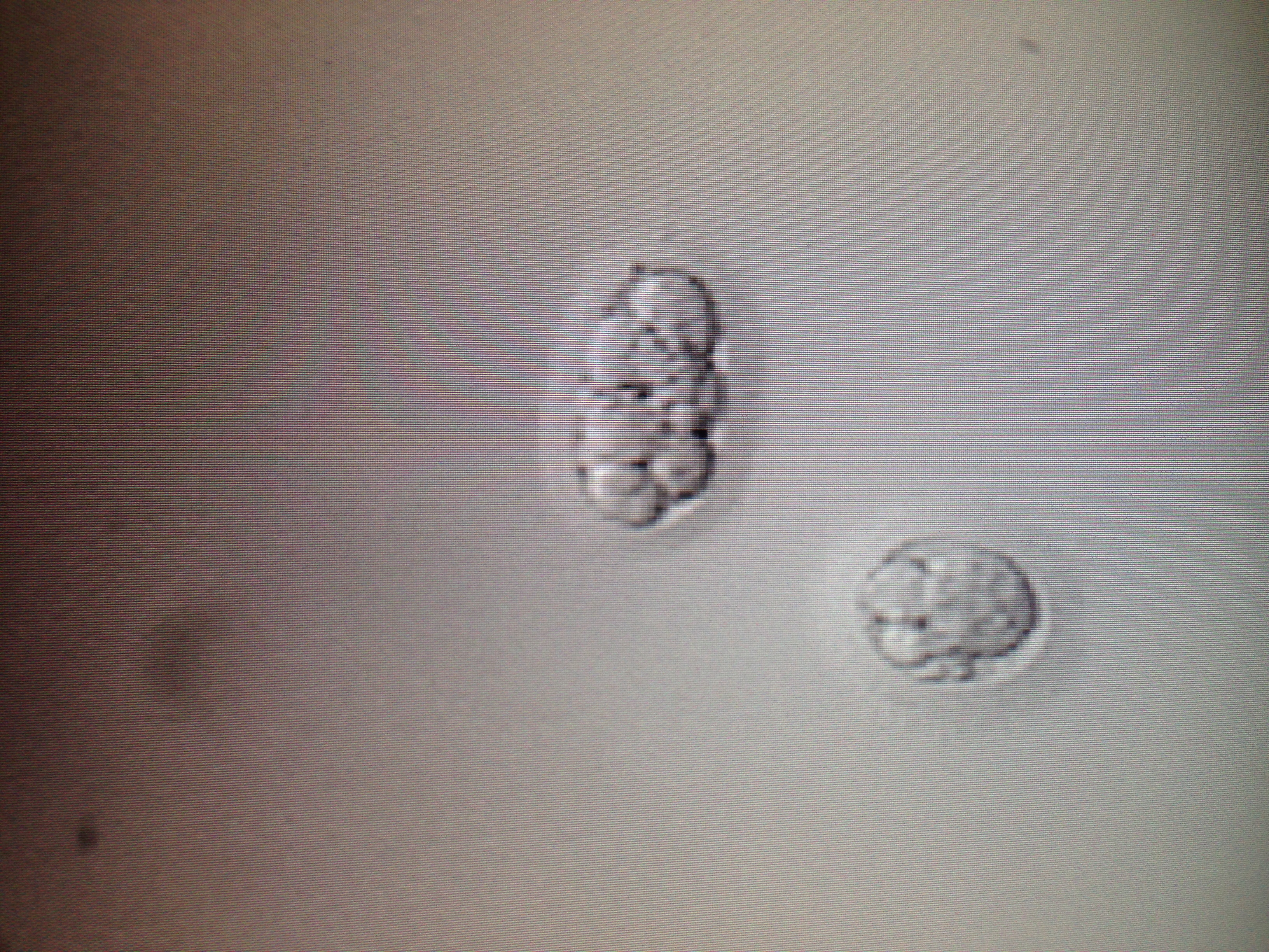 I'm PUPO! We transferred 2 day 3 embryos today. 1 7 cell and 1 3 cell. It was such a cool feeling being able to see the embies before the transfer. Picture attached.
