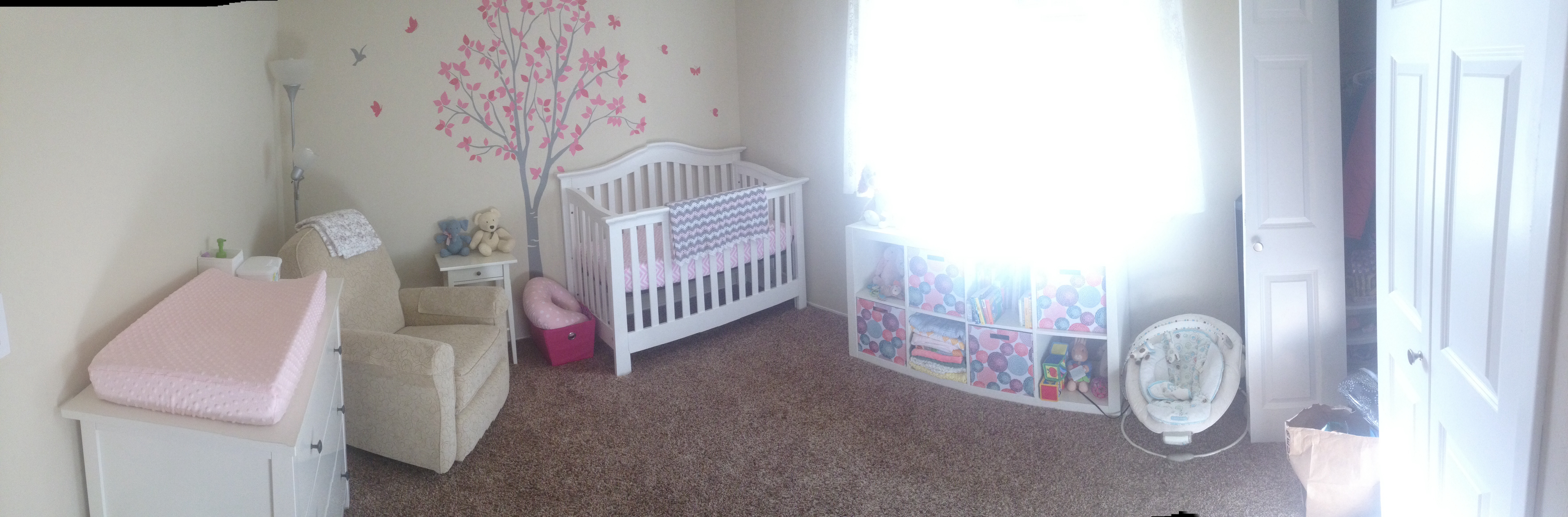 LO is still in a pack n play in iur room for now but we'll be putting her in the nursery in a month or so.