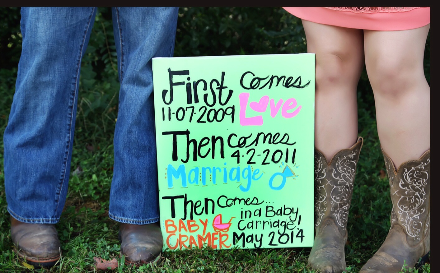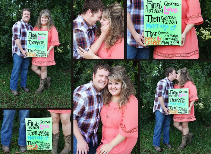 We finally told everyone after we heard the heart beat! My DH had already spilled the beans several times, man can't keep a secret.. We wanted to do something memorable so we had our photographer friend do some pictures and had them to hand out to everyone, it was awesome! You can't even tell I had a battle with morning sickness during these pictures either