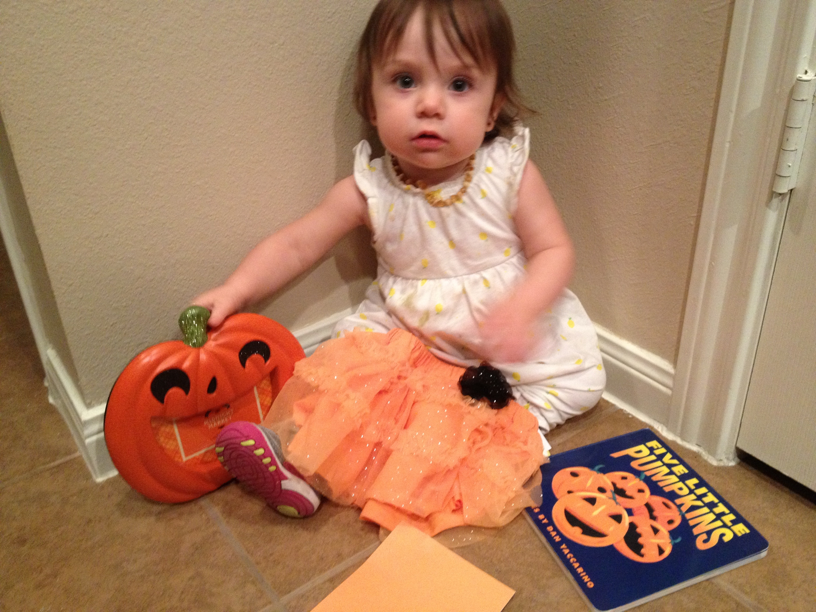 @jmorta04 and baby L! E is obsessed with the pumpkin picture frame, I can't wait to put a Halloween pic in it. The skirt is just adorable, and E loves books! We read it twice last night.