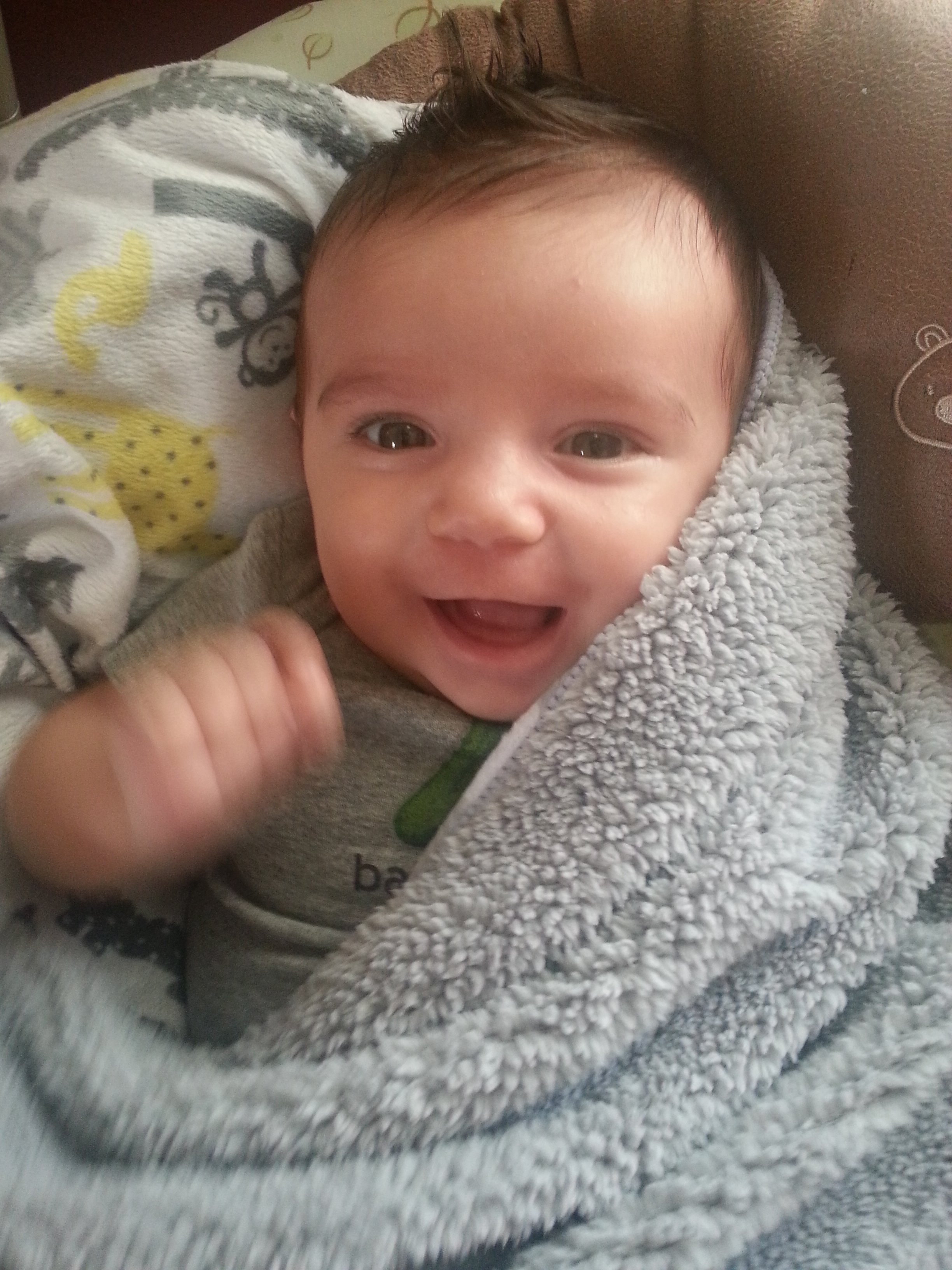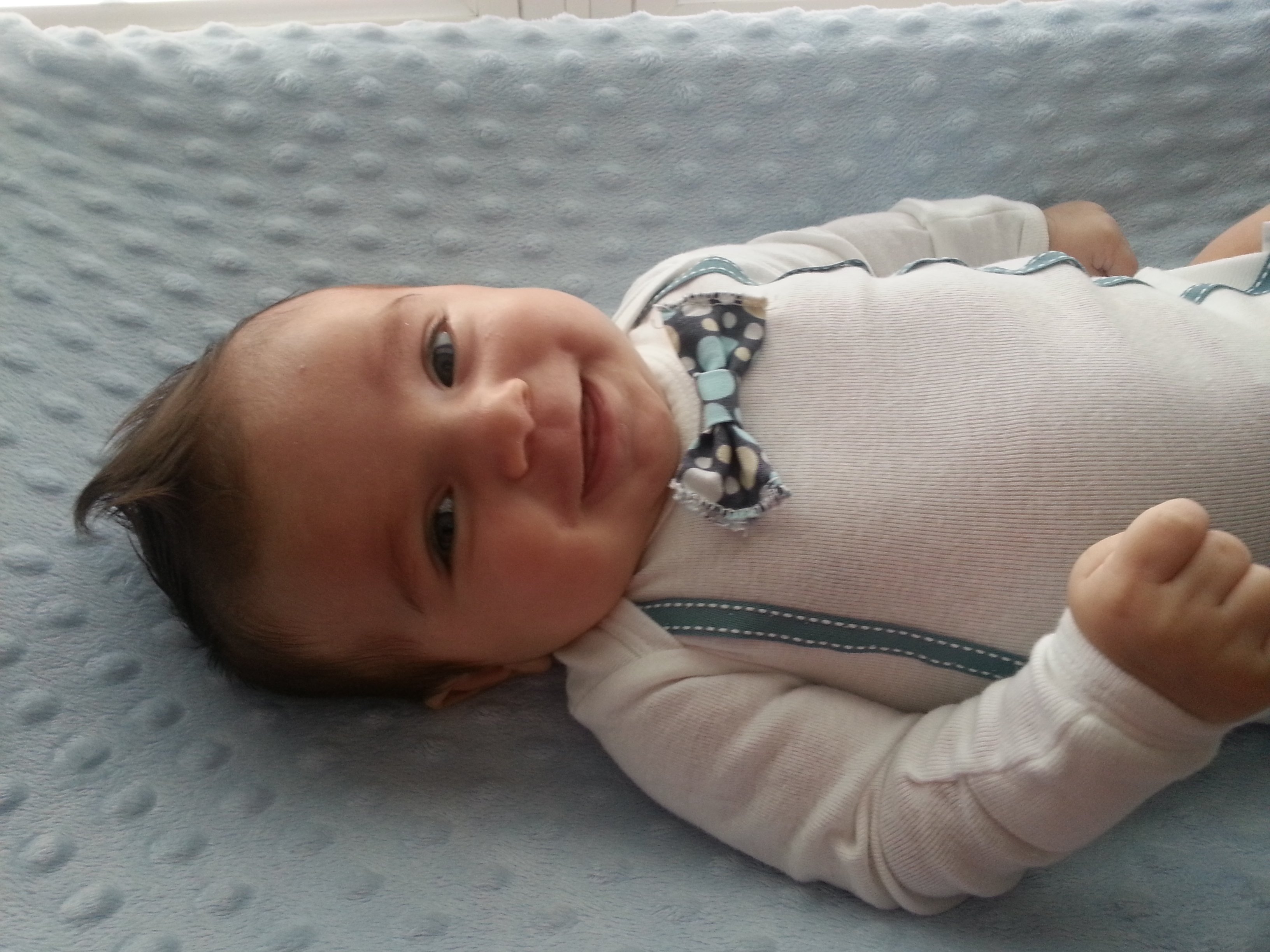 That onesie is just fabulous!!! He's such an adorable smiley guy