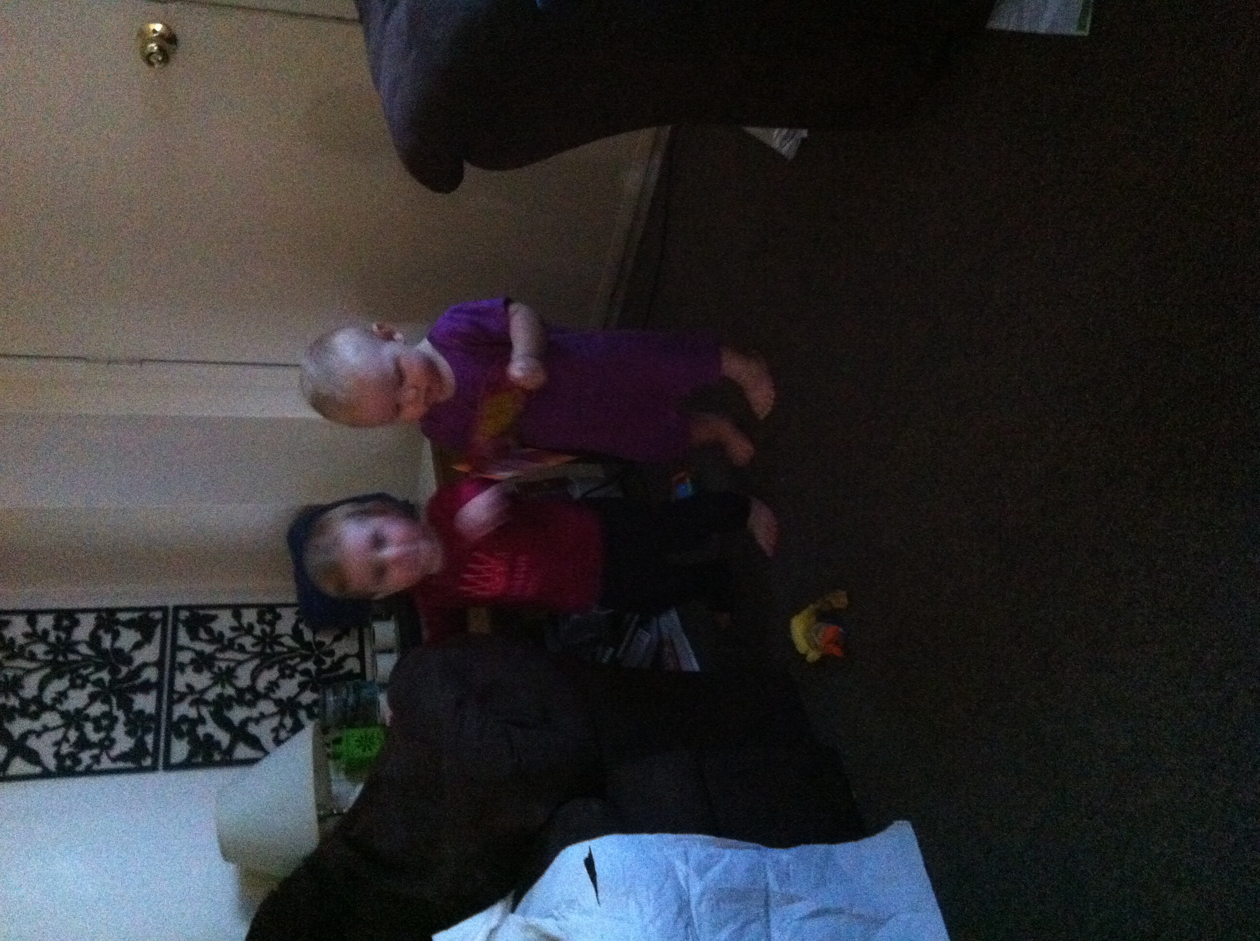 Ella had a friend over a couple days ago the lil girl in the purple is 15 months old and Ella turned a year old yesterday they were sooo cute together, gabbing in their own little language!