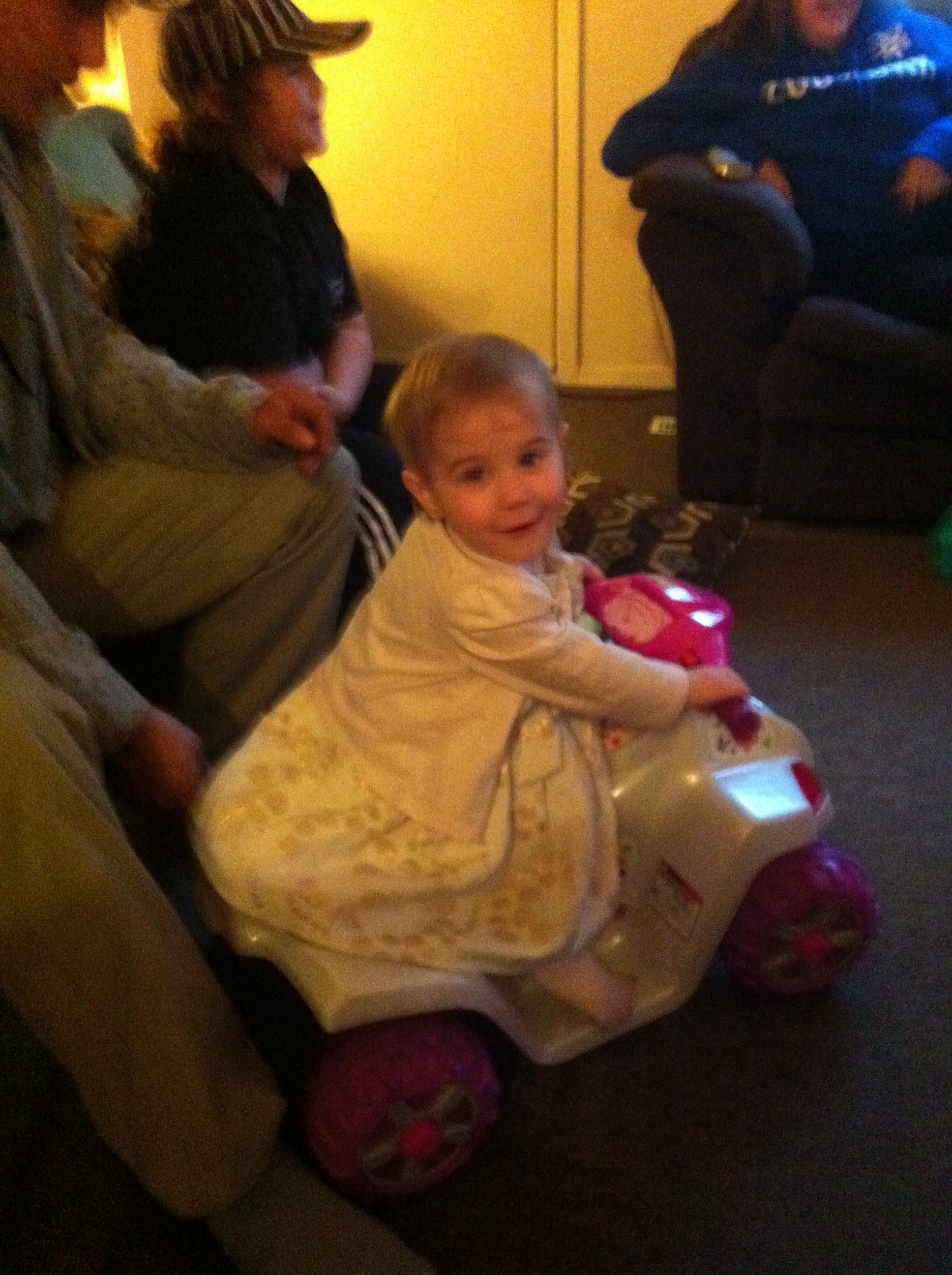 it was her birthday party this weekend, she got to see her dad and half brothers and they got her a little ATV! She LOVES it. Were leaving the battery unhooked for now but she loves sitting on it and turning the handle bar. She's going to be just like dad, right into anything gas powered with a motor lol.