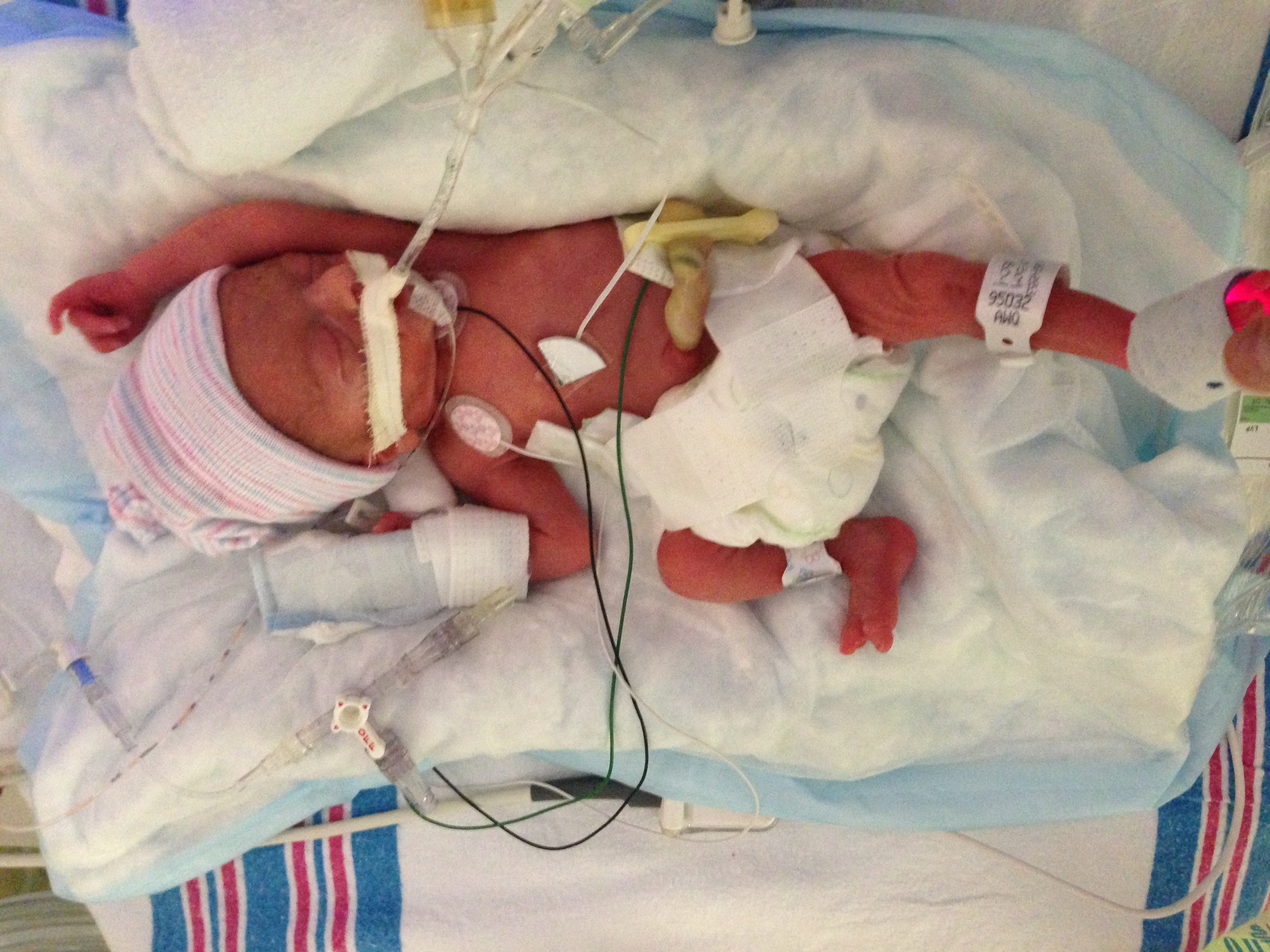 Hi everyone. I had posted an intro here about 3 weeks ago. I had PProm at 24 weeks with my first baby. I was able to carry LO until this Sat, when my contractions began. Jacob Noah was born at 27 weeks, weighing 2.2 pounds and 14 inches. He is doing an amazing job so far. He is off the vent, breathing in his own as of last night at 6 pm. He had his first bowel movement and my husband got to change his diaper. He's an amazing little fighter!