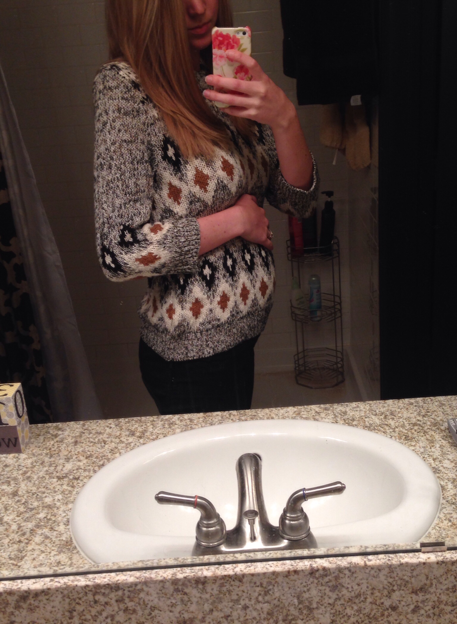I'm really glad that I told my boss two weeks ago, this past 5 to 7 days have definitely been less to no bloat, and there's a legit bump. After I told her, I promptly told the coworkers in my department because one had a dream I was pregnant, and the others were suspicious. That's kind of what happens when you sit with a small group of women on a daily basis. heh.