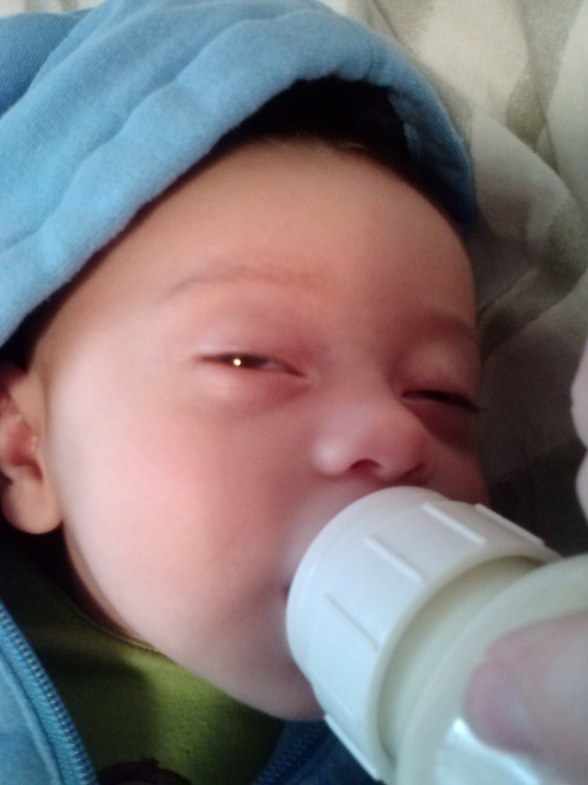 Ds totally blisses out while getting a bottle its so cute. And i wanted to aw since he doesnt get milk drink. Any one else want to show off their blissed out babies are welcomed
