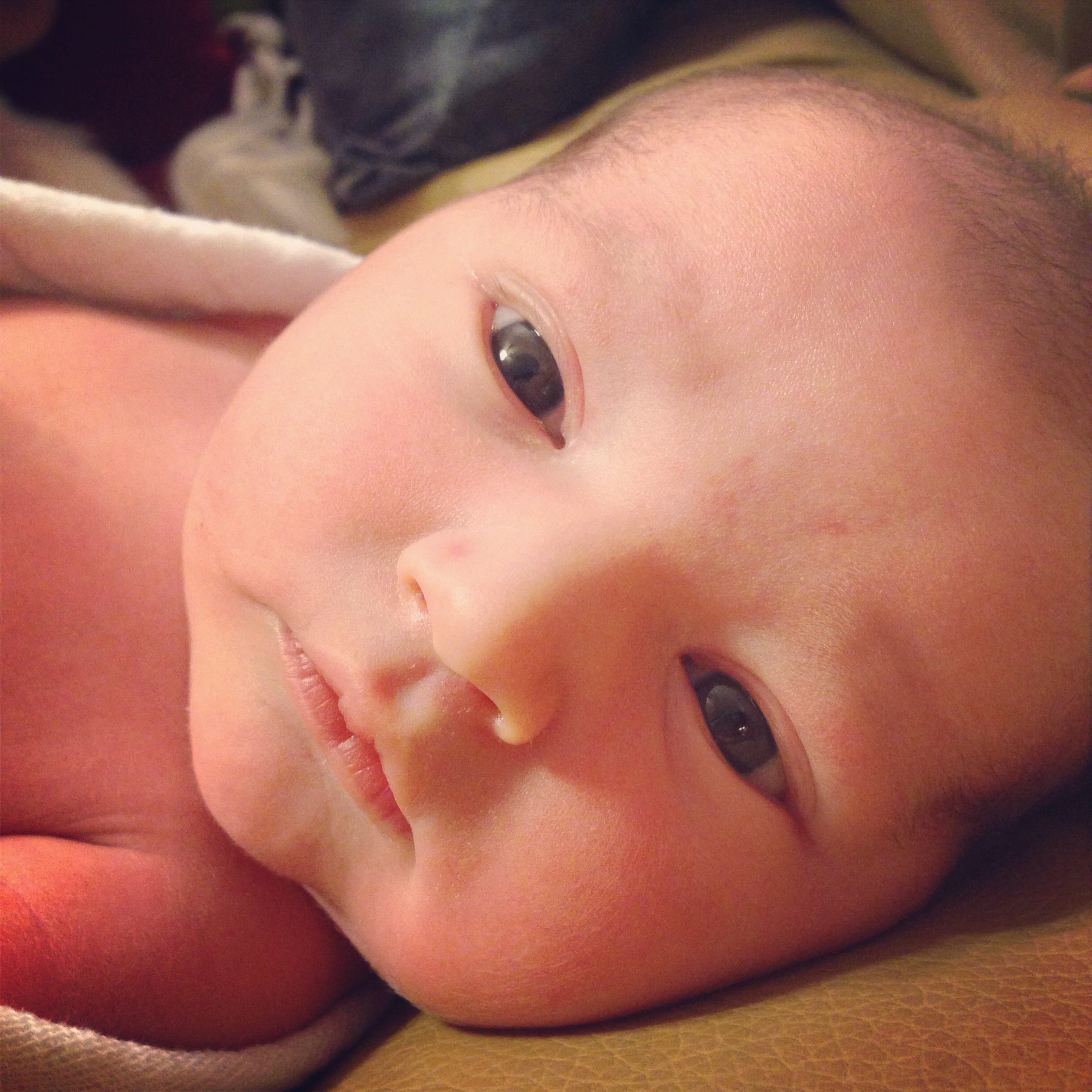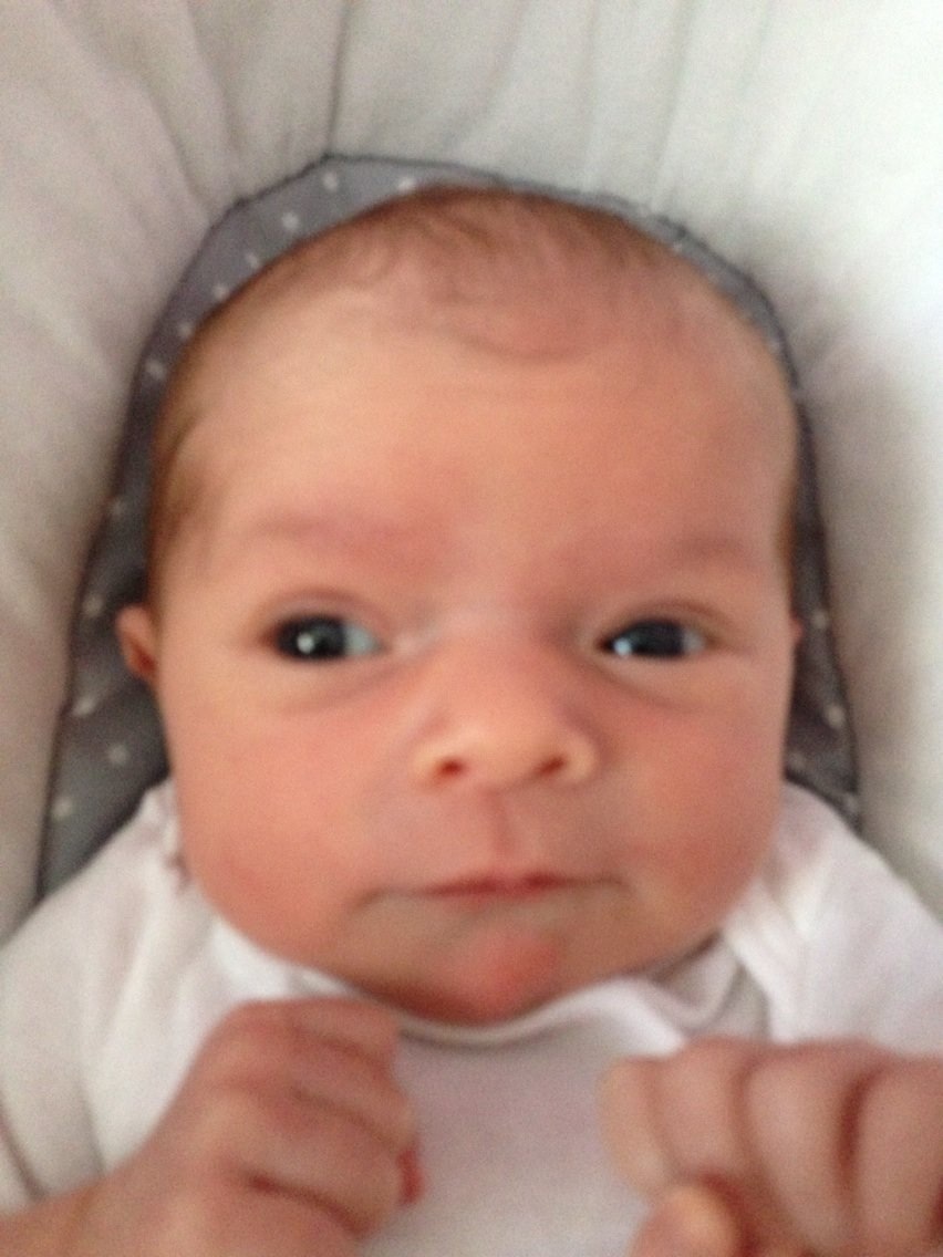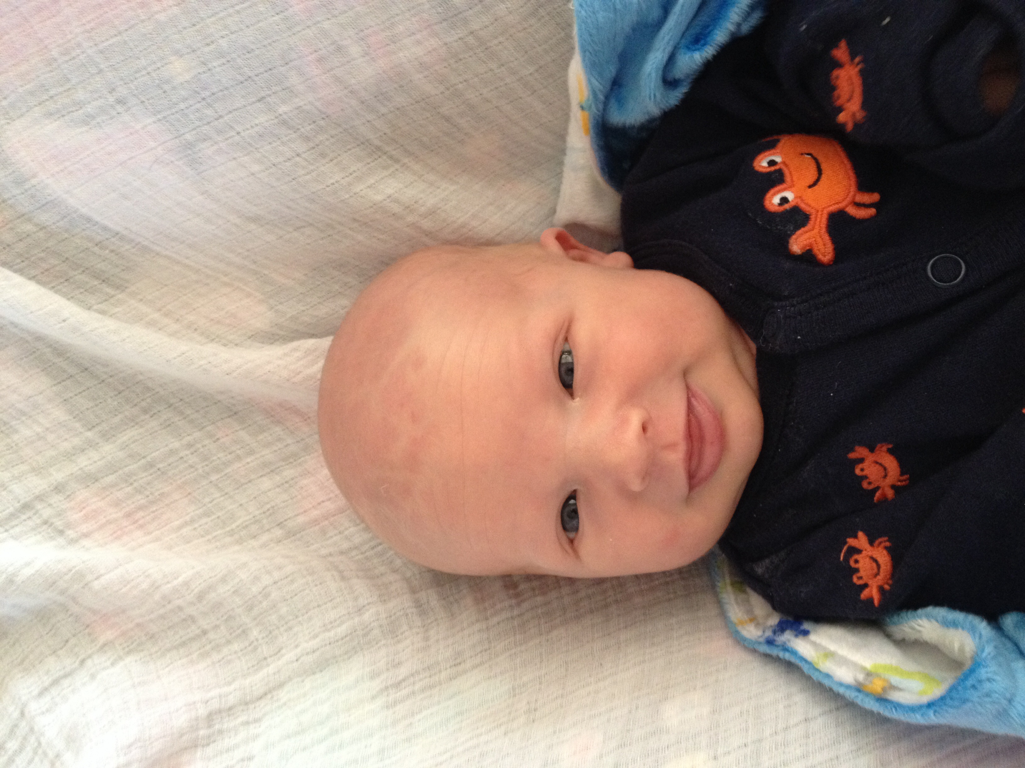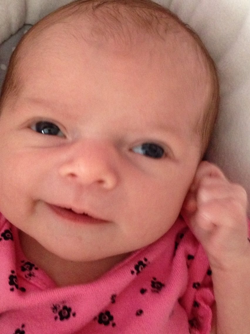 The first photo is a day old, then one from a few days ago and a smiling baby yesterday.